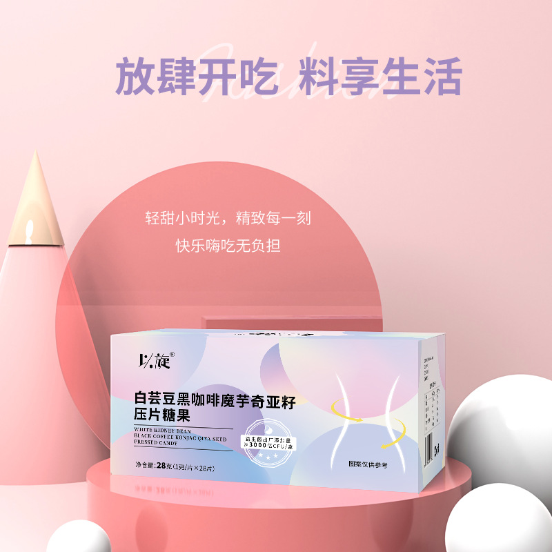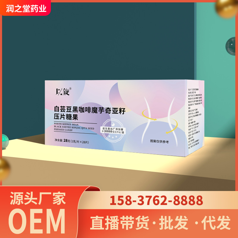 白蕓豆黑咖啡魔芋奇亞籽壓片糖果免費打樣 碳水阻斷片白蕓豆黑咖啡片生產基地