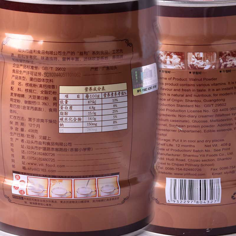 益利高鈣純核桃粉罐裝408g源頭工廠 營養沖飲五谷代餐粉核桃粉貼牌定制