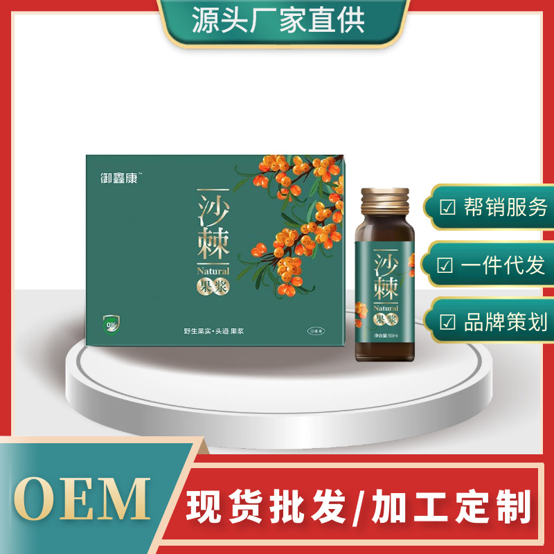 御鑫康沙棘原漿汁400ml盒貼牌定制 口服液瓶沙棘果汁源頭工廠