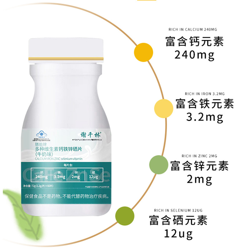 多種維生素鈣鐵鋅硒片貼牌定制 果味咀嚼含片 源頭工廠補充鈣鐵鋅硒維生素ABC一站式貼牌代加工