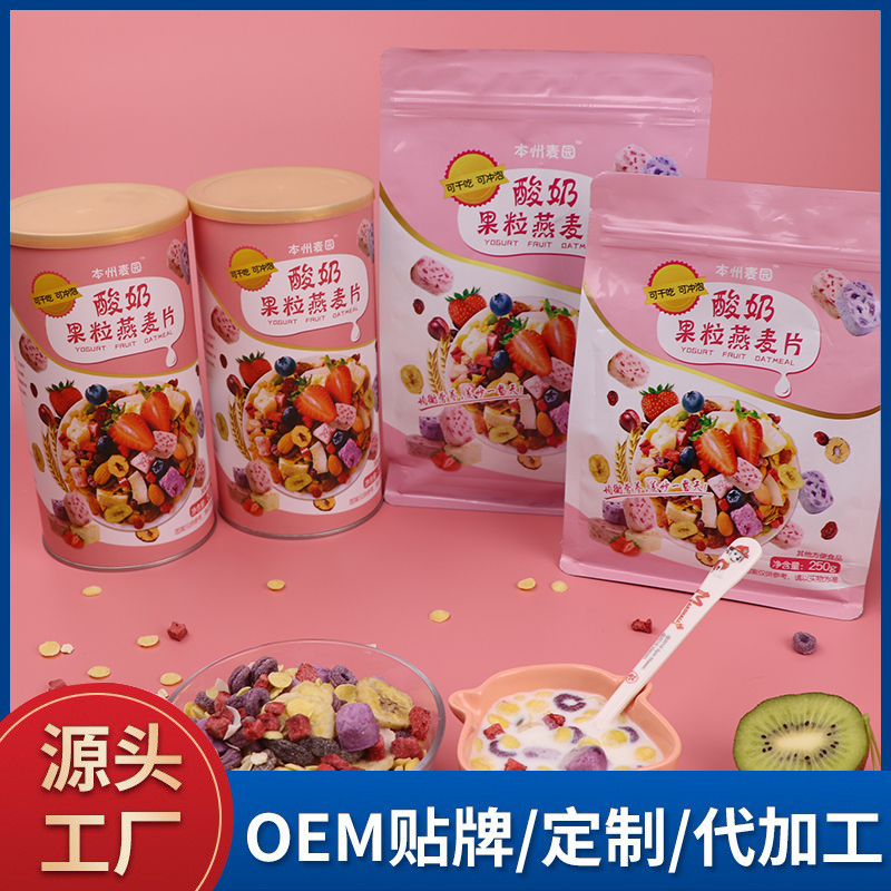酸奶果粒麥片oem貼牌 干吃早餐烘焙干吃即食熟混合燕麥片谷物營養(yǎng)