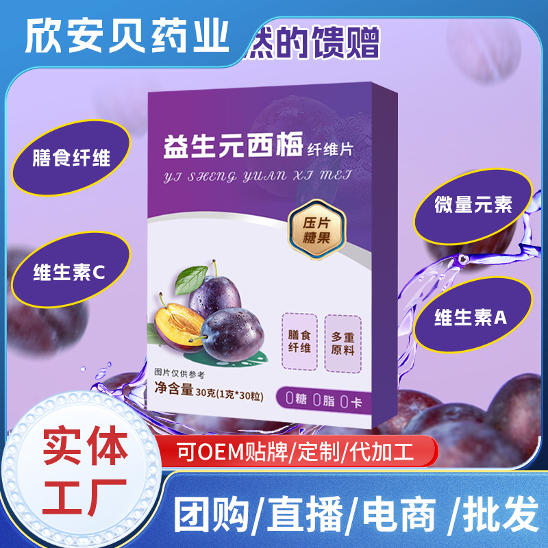益生元西梅纖維片OEM代加工 膳食纖維片咀嚼片壓片糖果貼牌定制加工