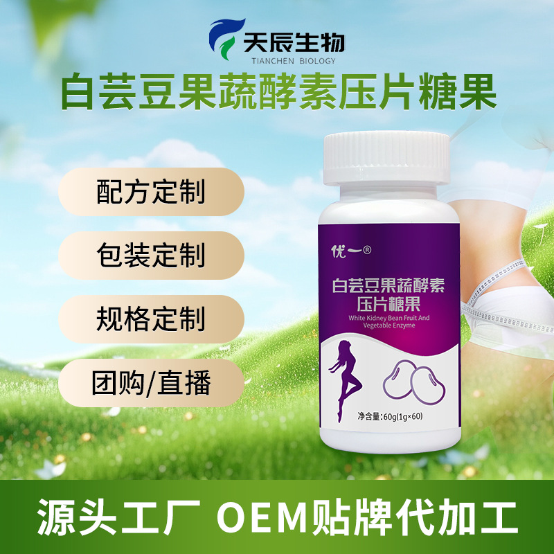 代工 白蕓豆咀嚼片批發(fā)OEM白蕓豆果蔬酵素膳食纖維壓片糖果 OEM