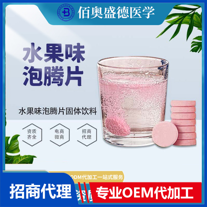 水果味泡騰片代加工西瓜水蜜桃橙子固體飲料草莓藍莓櫻桃泡騰片OEM代加工