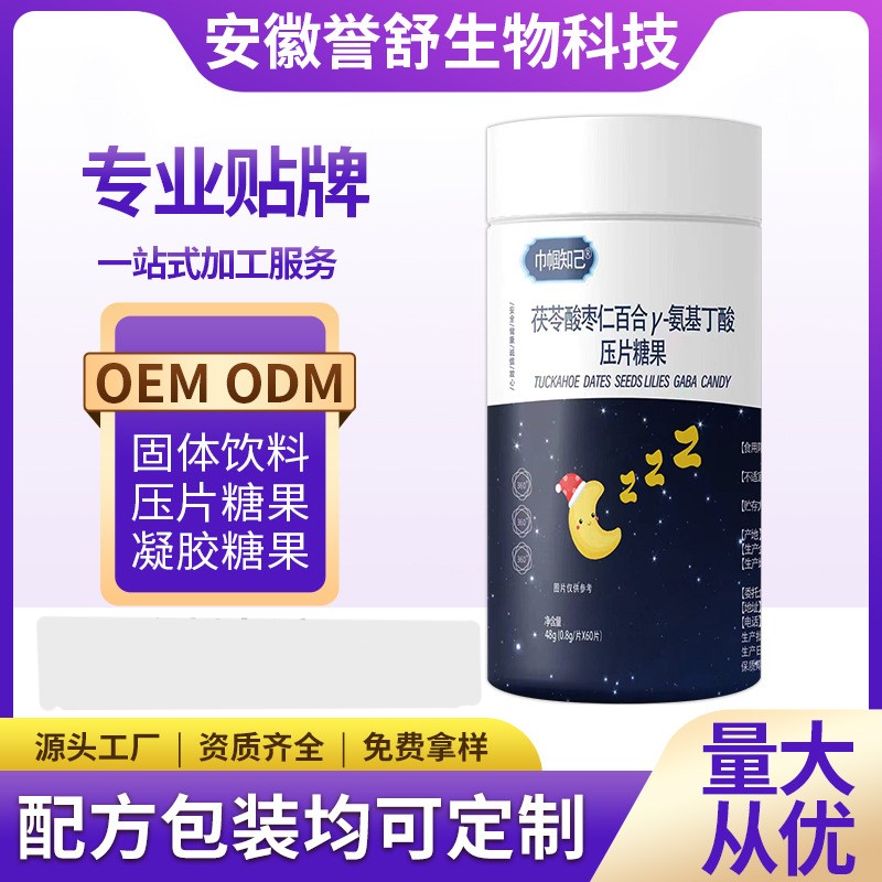 - [2022-12-08]·茯苓酸棗仁百合γ-氨基丁酸壓片糖果oem貼牌,讓您擁有自己的品牌