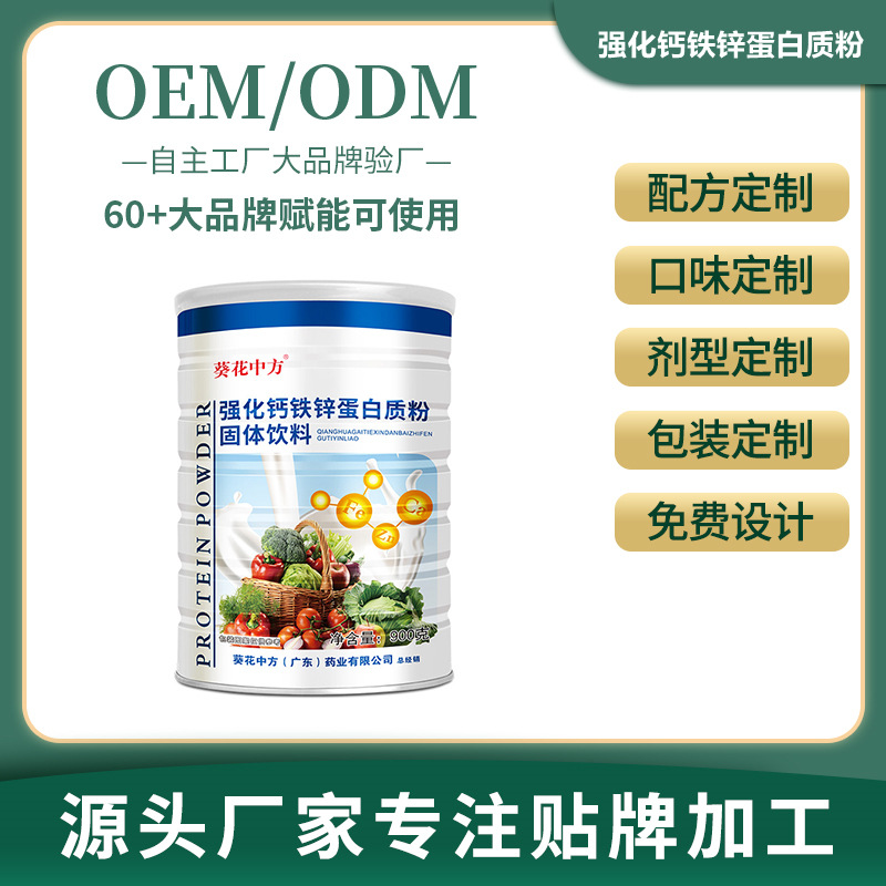 專業承接鈣鐵鋅蛋白質粉OEM代加工,源頭工廠提供oem貼牌代加工鈣鐵鋅蛋白質粉價格行情...,廣州健藥醫藥科技廠可按照客戶要求為客戶免費設計產品配方并進行打樣。可以幫客戶代為采購包裝材料。成品上市后,可為客戶提供產品銷售的建議及方案!