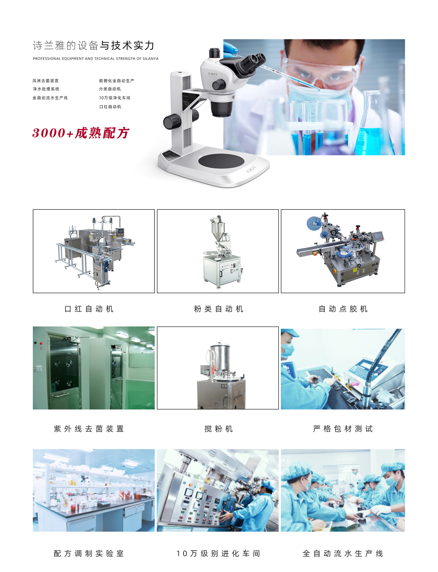 詩蘭雅化妝品有限公司是一家專業生產眼影、口紅、腮紅、粉餅、唇彩等彩妝系列的公司,致力于設計、開發和生產時尚的化妝品。我公司始終站在市場的前沿,堅持“專業優質服務”的發展理念,以這種前沿的理念和敬業精神,在全球最具競爭力的化妝品公司中占據了很高的地位,產品出口美國、意大利、泰國、墨西哥等多國,成為數百個品牌在中國可靠的合作伙伴。經過多年的不懈努力,得到了業界和客戶的高度認可。 工廠占地面積35畝,建筑面積1.5萬平方米,工廠員工480人。擁有完善的生產、品質管控體系,引進高精密生產工藝,全自動化、全封閉式無菌生產車間。擁有專業的研發、設計團隊,每年開發新品超過百款,款式引領時尚潮流。產品符合國家標準,精選高品質的藥用級原料,不含重金屬,為消費者提供優質的美妝產品。