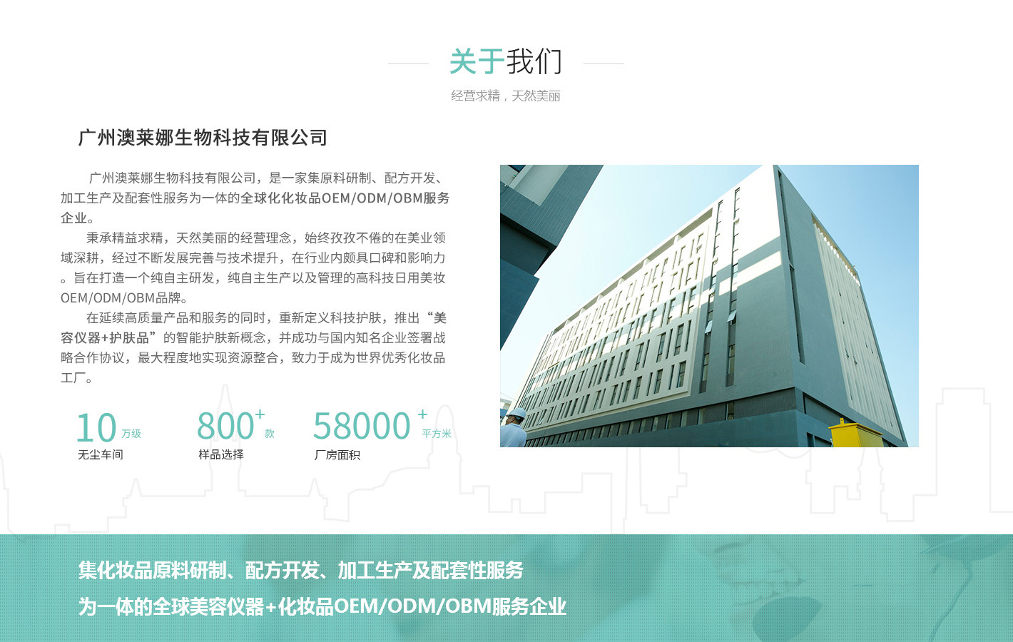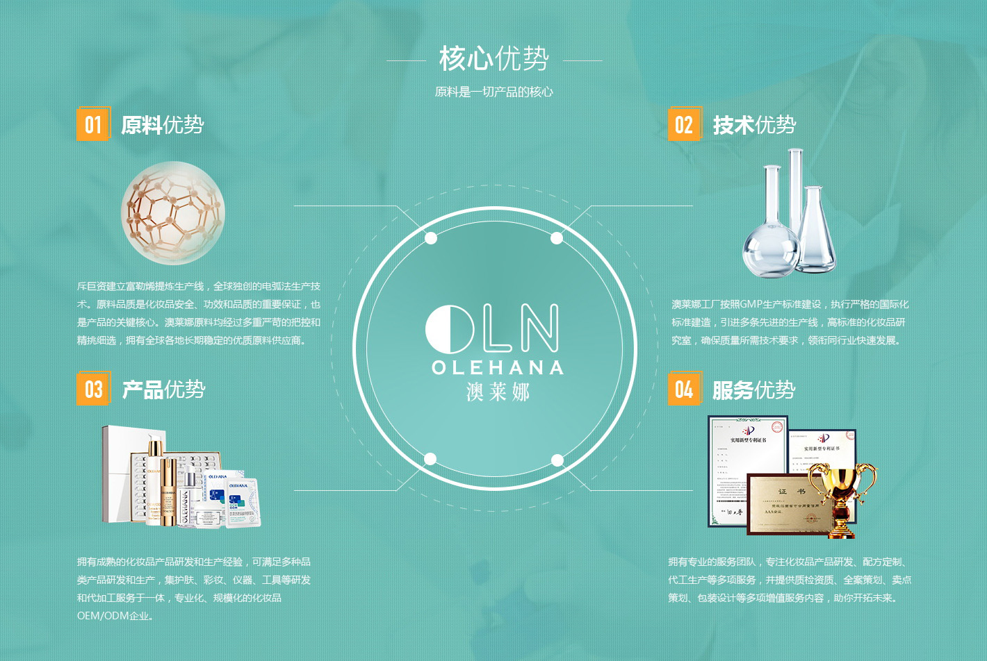 廣州澳萊娜生物科技有限公司于2017年升級(jí)為“個(gè)性化,智慧化,定制化,黑科技”C2B(按需定制)的OBM,OEM,ODM模式,并建立化妝品和家用美容儀的研發(fā),生產(chǎn),銷售全產(chǎn)業(yè)生態(tài)鏈,旗下有雅慕詩(shī)婷,依然生活,寇見等多個(gè)品牌矩陣。澳萊娜集團(tuán)擁有58000平方米綠色生態(tài)先進(jìn)工業(yè)園區(qū),按照GMPC國(guó)際標(biāo)準(zhǔn)建設(shè)的10萬(wàn)級(jí)潔凈空間,可視化參觀通道,化妝品及美容儀器出口到歐美,東南亞等國(guó)家的實(shí)際經(jīng)驗(yàn),致力將化妝品和家用美容儀器完美結(jié)合。