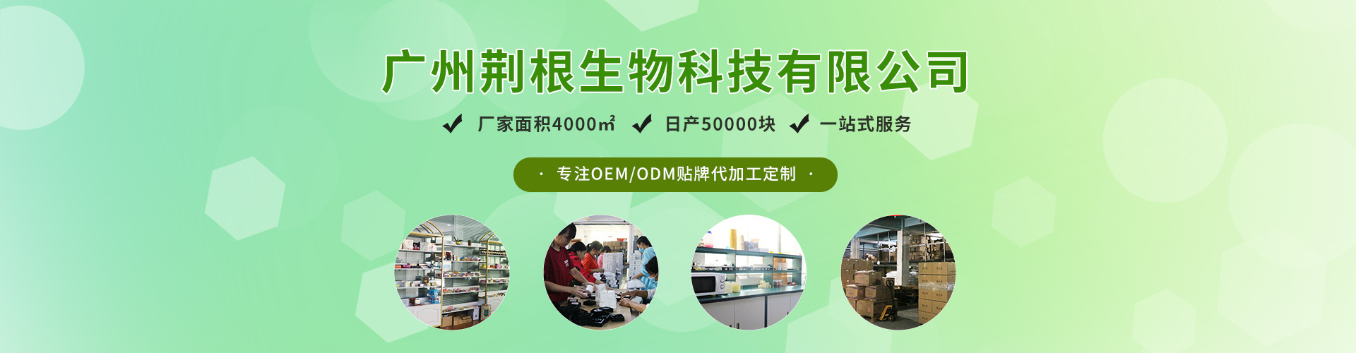 廣州荊根生物科技有限公司是一家集開發、生產、銷售手工皂、精油皂的實力廠家。(擁有多個品牌),線下有兩大知名品牌。工廠面積4000平方米。日產手工皂50000塊。產口遠銷美國、巴西、南非、智利等歐美各國。 主要業務:研發、生產手工皂精油皂(oem\odm) VIP客戶可免費設計品牌、logo、包裝!歡迎有實力的批發商、大商場經銷商、網絡經銷商合作共贏!
