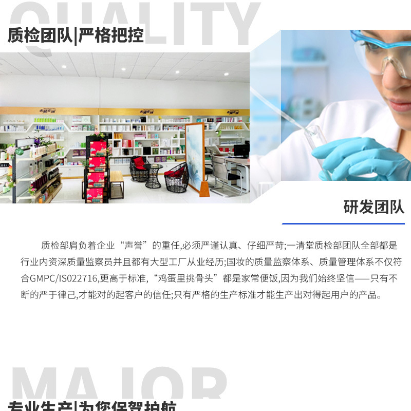 一清堂藥業科技(廣州)有限公司,專注全新生物基因活性肽及草木肽能技術配方。研發中心毗鄰風景秀麗的廣州白云山,是一家集研發、生產、OEM、ODM、銷售一體的科技有限公司,經營范圍包括:妝字號、消字號、械字號的產品。