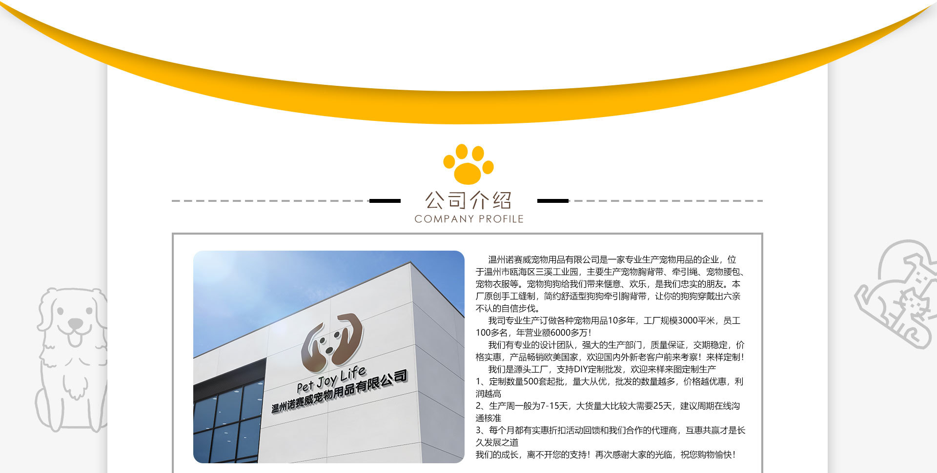 溫州諾賽威寵物用品有限公司是寵物用品、戶外用品、寵物配件、縫紉產品、寵物飾品等產品專業生產加工的公司,擁有完整、科學的質量管理體系。溫州諾賽威寵物用品有限公司的誠信、實力和產品質量獲得業界的認可。歡迎各界朋友蒞臨參觀、指導和業務洽談。