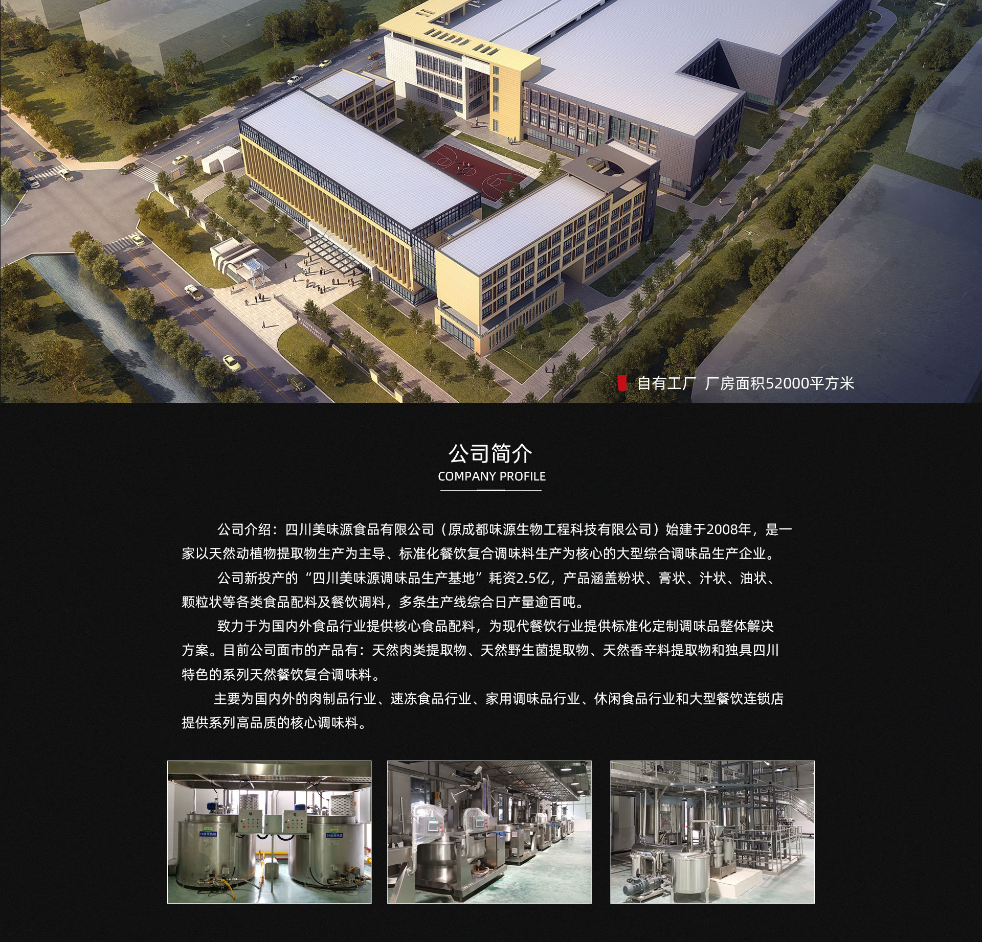 四川美味源食品有限公司(原成都味源生物工程科技有限公司)始建于2008年,是一家以天然動(dòng)植物提取物生產(chǎn)為主導(dǎo)、標(biāo)準(zhǔn)化餐飲復(fù)合調(diào)味料生產(chǎn)為核心的大型綜合調(diào)味品生產(chǎn)企業(yè)。 公司新投產(chǎn)的“四川美味源調(diào)味品生產(chǎn)基地”耗資2.5億,產(chǎn)品涵蓋粉狀、膏狀、汁狀、油狀、顆粒狀等各類食品配料及餐飲調(diào)料,多條生產(chǎn)線綜合日產(chǎn)量逾百噸