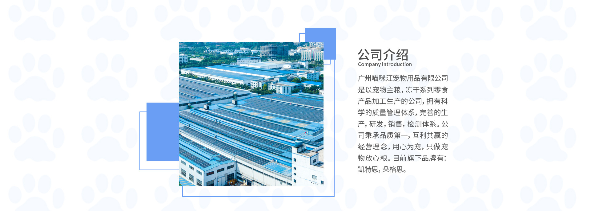 廣州喵咪汪寵物用品有限公司是以寵物主糧,凍干系列零食產(chǎn)品加工生產(chǎn)的公司,擁有科學(xué)的質(zhì)量管理體系,完善的生產(chǎn),研發(fā),銷售,檢測(cè)體系。公司秉承品質(zhì)第一,互利共贏的經(jīng)營(yíng)理念,用心為寵,只做寵物放心糧。 目前旗下品牌有:凱特思,朵格思。公司與多家零售商和代理商建立了長(zhǎng)期穩(wěn)定的合作關(guān)系。廣州喵咪汪寵物用品有限公司經(jīng)銷的寵物用品、寵物零食、寵物凍干品種齊全、價(jià)格合理。公司實(shí)力雄厚,重信用、守合同、保證產(chǎn)品質(zhì)量,以多品種經(jīng)營(yíng)特色和薄利多銷的原則,贏得了廣大客戶的信任。