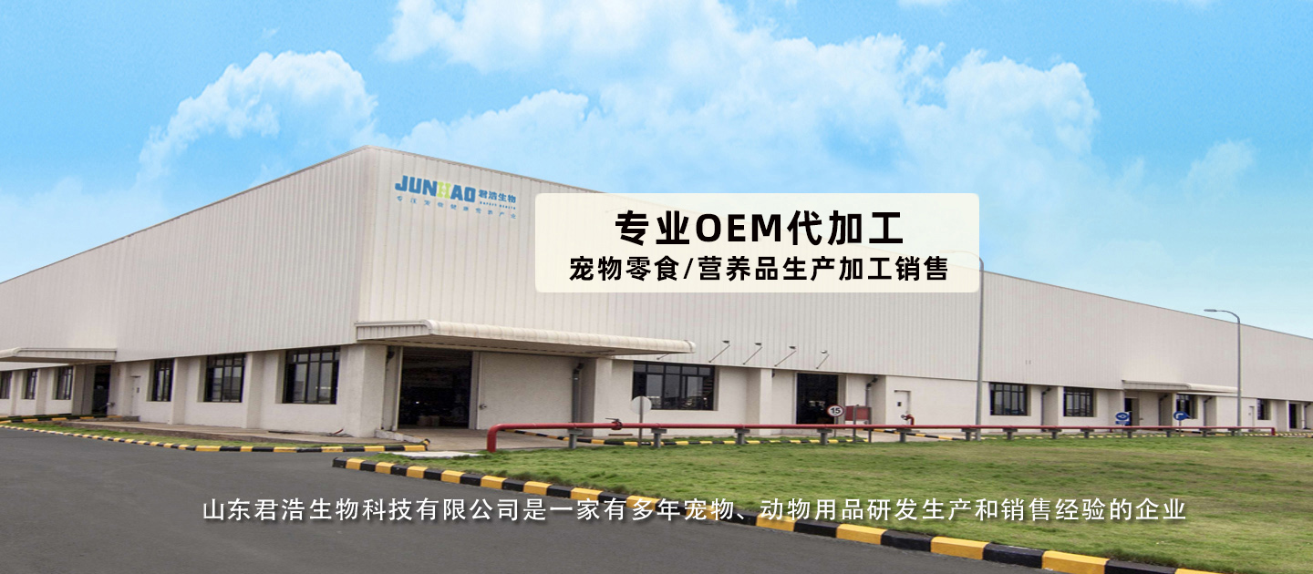 山東君浩生物科技有限公司是一家集生產、研發、銷售于一體的綜合型寵物營養品現代化企業,企業主要生產經營固態、半固態以及液態寵物營養品、動物營養品,是國內知名度較高的一家大型OEM生產研發加工企業。