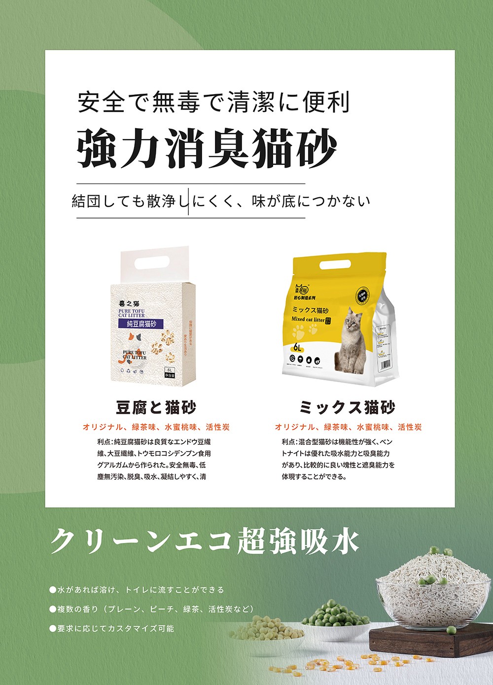 公司發展始終為客戶提供好的產品和技術支持、健全的售后服務,我公司主要經營貓砂生產研發、寵物用品、食品飼料批發、加工、代工OEM與銷售,寵物用品銷售,貨物或技術進出口。