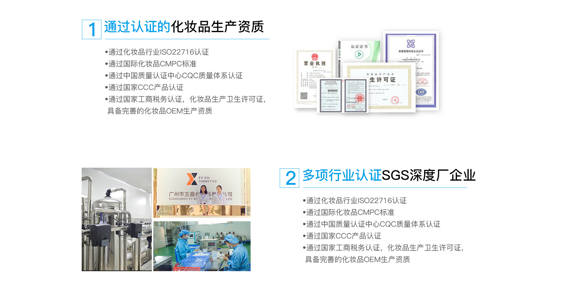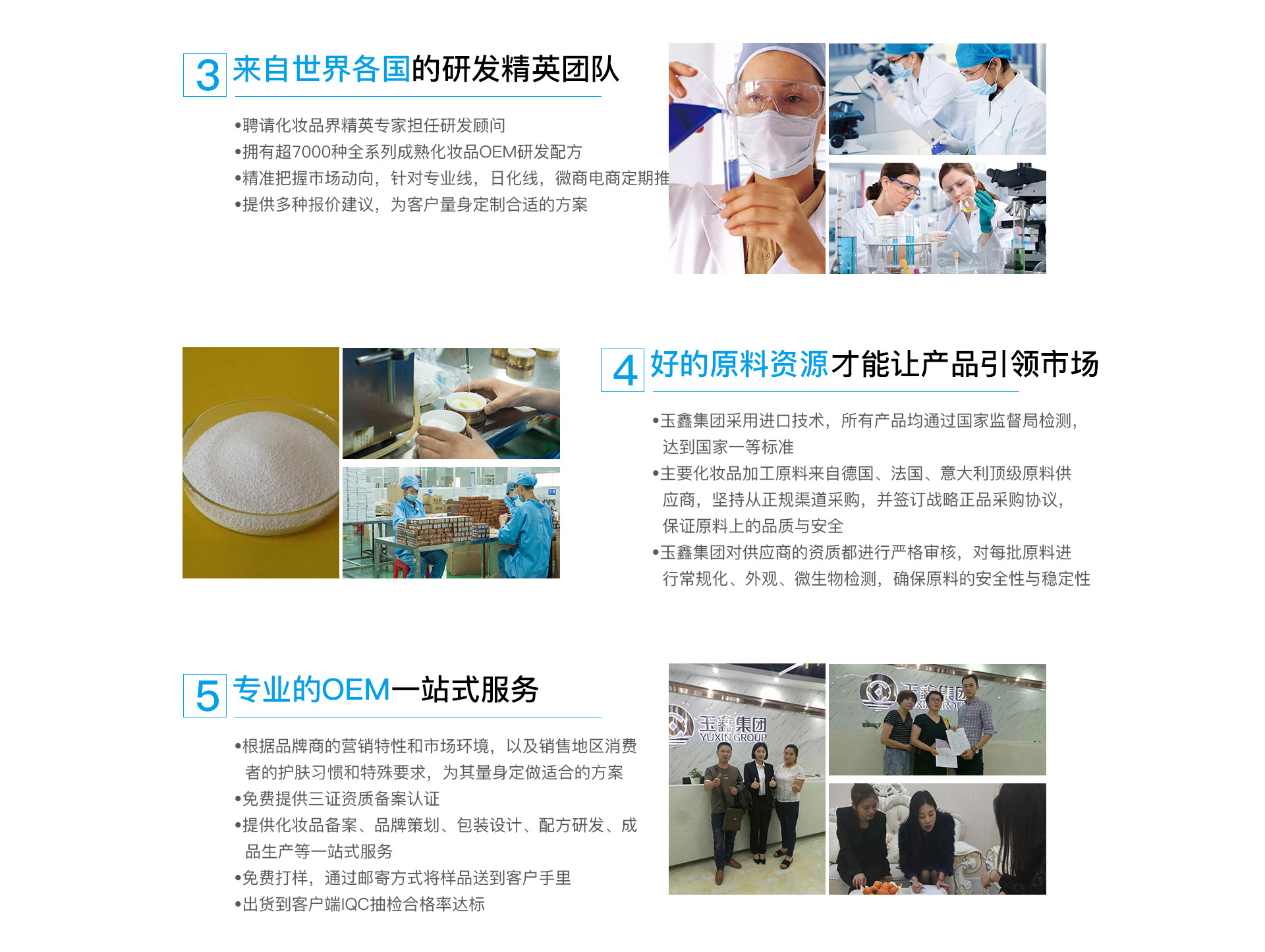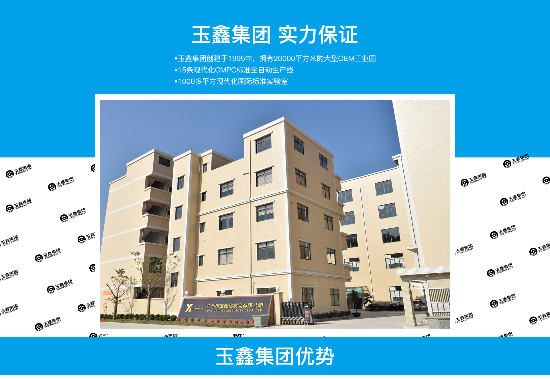 深圳市寶安區沙井美顏堂化妝品廠是玉鑫集團旗下子公司。是一家集研發、生產及服務于一體的專業化妝品OEM/ODM加工企業,是化妝品品牌輸出基地。創建于1995年,坐落于交通便捷、物流發達的化妝品生產基地廣州花都區,擁有20000平方米的大型OEM工業園,并配備國外先進生產設備,15條現代化全自動生產線,多套先進乳化、自動灌裝、滅菌、檢驗檢測等儀器,殷實宏厚的專業實力保障了客戶的利益。多年來,玉鑫已為眾多品牌商提供全方位的、個性化的OEM/ODM服務,幫助客戶在專業線渠道、微電商渠道、日化線渠道、大型連鎖等渠道打造一個高品質、高科技的尖端品牌,市場更是涉及到馬來西亞、新加坡、韓國、香港、臺灣等國家或地區,同時與軍醫大學保持長期的人才培養與輸送的合作協議,公司總工程師、科研人員、技術骨干均為軍醫大學或精細化工系畢業,由此保障公司從產品設計、配方定制、原料選取到產品質量都能一直處于行業的領先地位