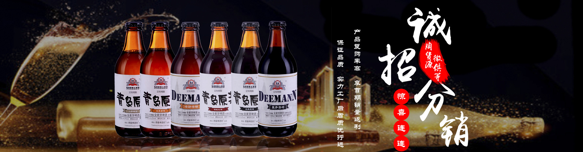 德曼啤酒坊R依托青島德曼啤酒技術裝備有限公司以為國內外啤酒集團制造全套釀酒設備之實力、遵照德國1516年《純正啤酒法》,無任何輔料添加,全心釀造酵母型全麥芽啤酒。無添加、無稀釋,麥香濃郁、酒花芳香、酒體醇厚、泡沫細膩、掛杯,保留酵母,罐發酵、經典配方,風味獨特