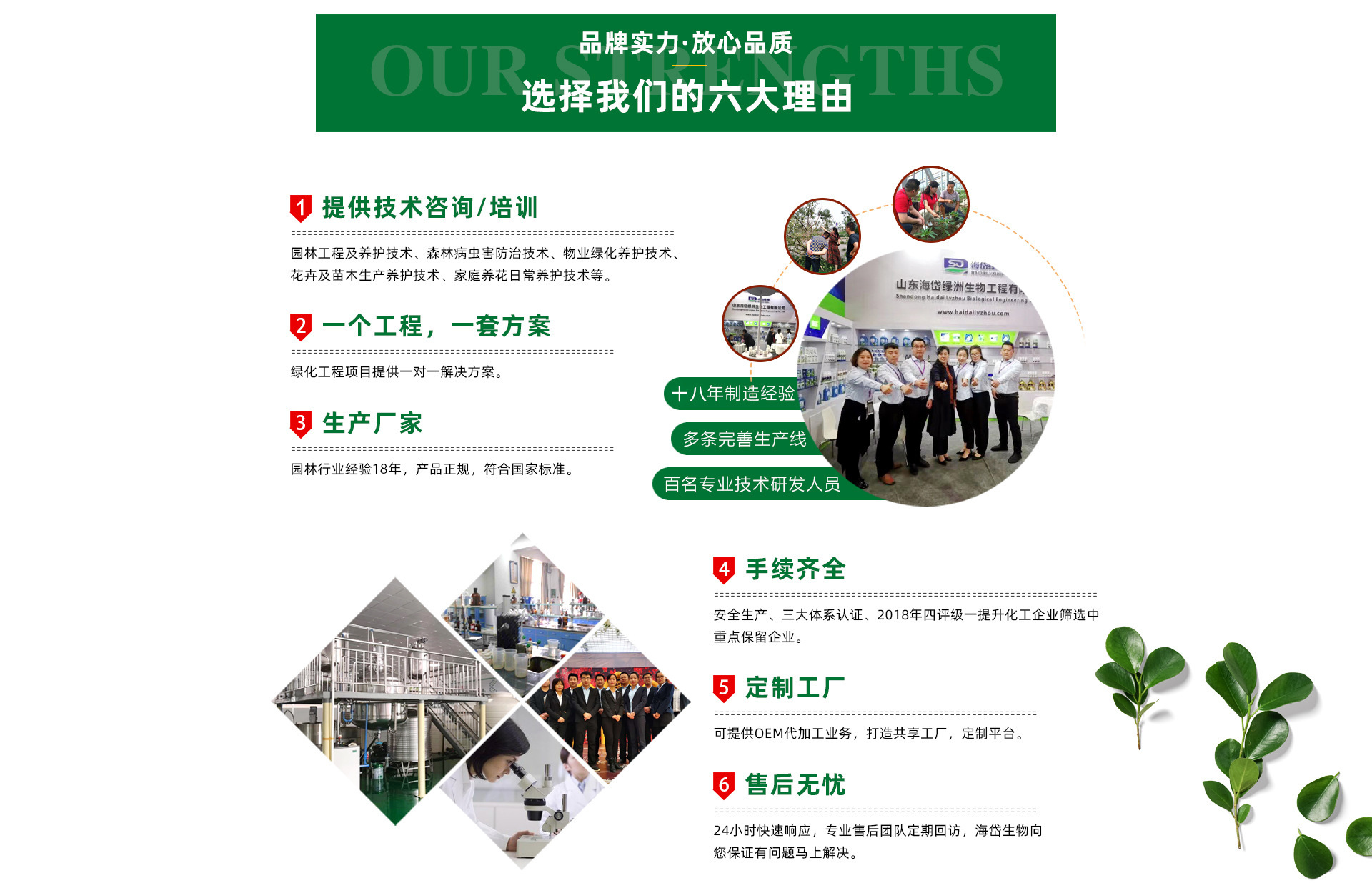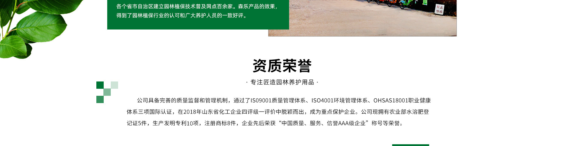 公司具備完善的質量監督和管理機制,通過了IS09001質量管理體系、ISO4001環境管理體系、OHSAS18001職業健康體系三項國際認證。公司現擁有農業部水溶肥登記證5件,生產發明專利10項,注冊商標8件,企業先后榮獲“中國質量、服務、信譽AAA級企業”稱號等榮譽。