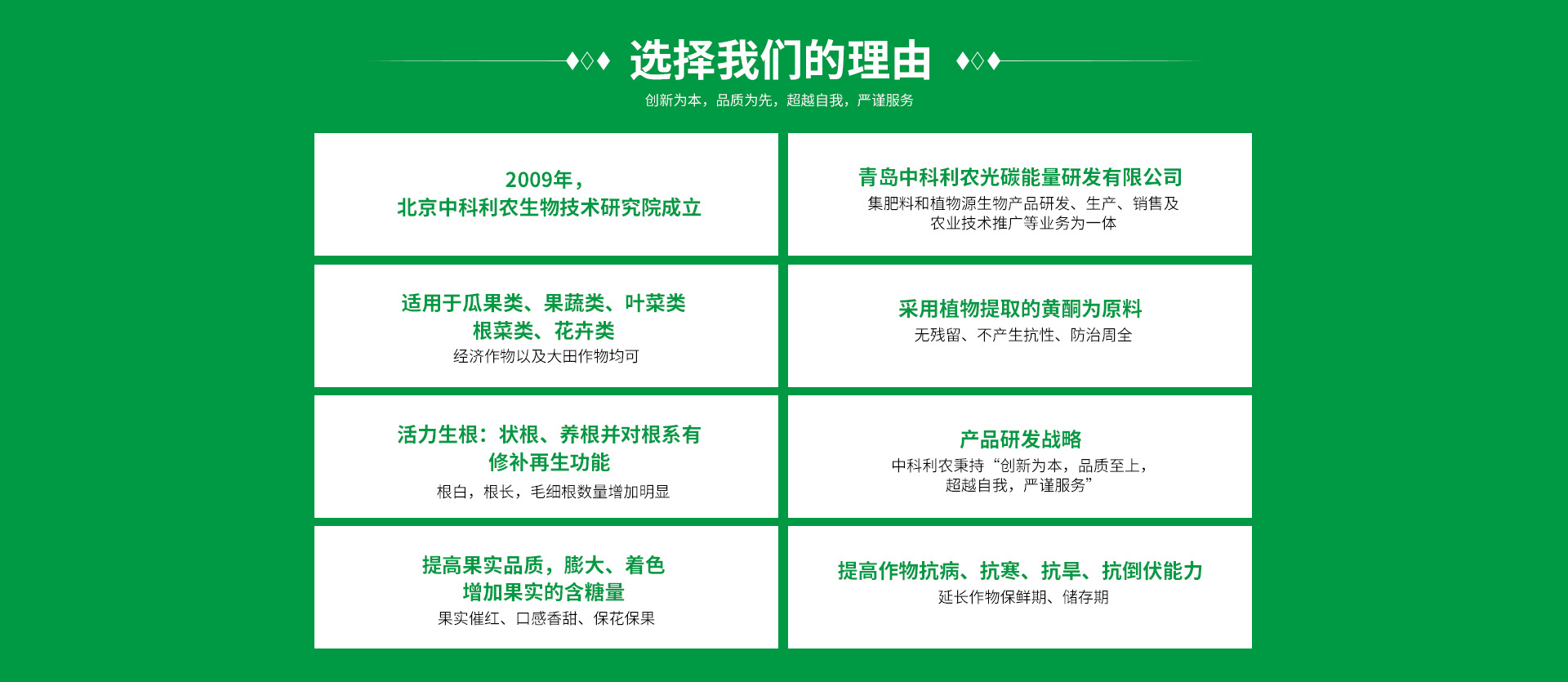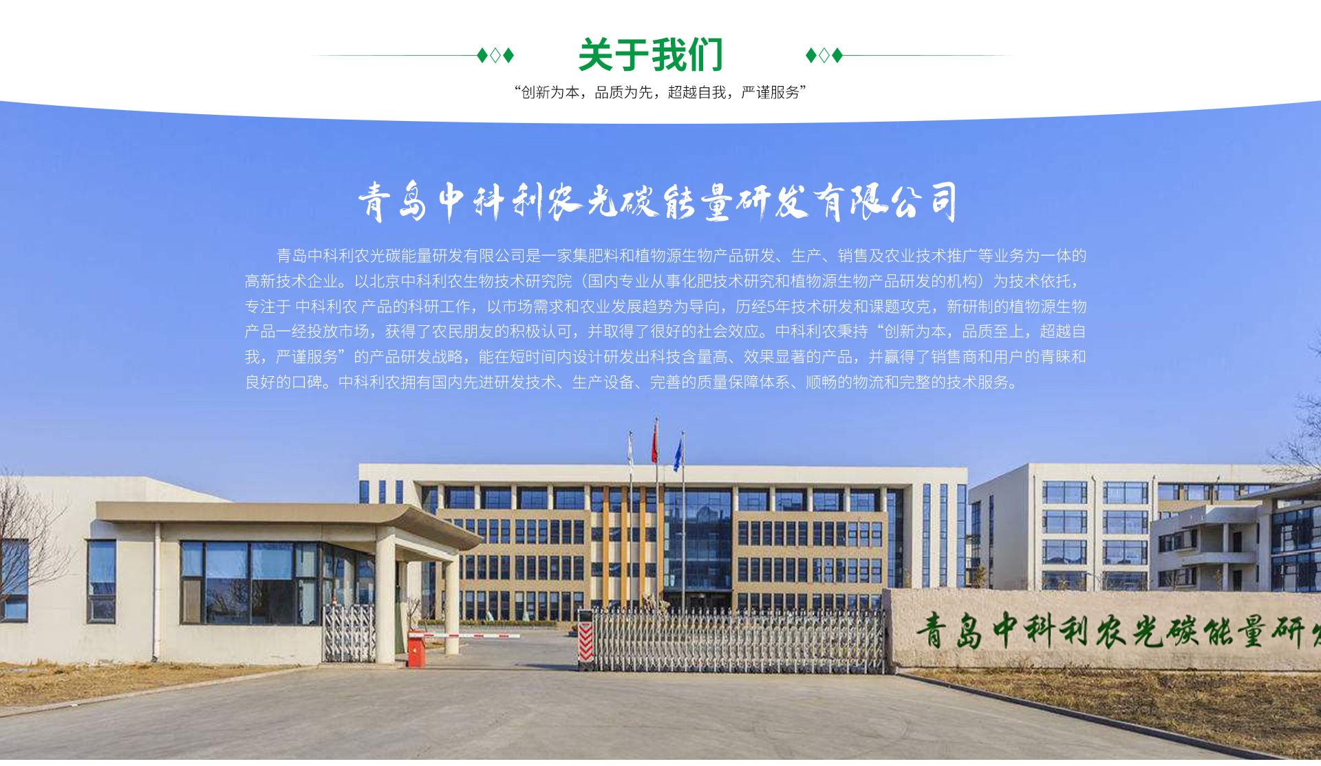 青島中科利農(nóng)光碳能量研發(fā)有限公司是一家集肥料和植物源生物產(chǎn)品研發(fā)、生產(chǎn)、銷售及農(nóng)業(yè)技術(shù)推廣等業(yè)務(wù)為一體的高新技術(shù)企業(yè)。以北京中科利農(nóng)生物技術(shù)研究院(國內(nèi)專業(yè)從事化肥技術(shù)研究和植物源生物產(chǎn)品研發(fā)的機(jī)構(gòu))為技術(shù)依托,專注于 中科利農(nóng) 產(chǎn)品的科研工作,以市場需求和農(nóng)業(yè)發(fā)展趨勢為導(dǎo)向,歷經(jīng)5年技術(shù)研發(fā)和課題攻克,新研制的植物源生物產(chǎn)品一經(jīng)投放市場,獲得了農(nóng)民朋友的積極認(rèn)可,并取得了很好的社會效應(yīng)。 中科利農(nóng)秉持“創(chuàng)新為本,品質(zhì)至上,超越自我,嚴(yán)謹(jǐn)服務(wù)”的產(chǎn)品研發(fā)戰(zhàn)略,能在短時間內(nèi)設(shè)計研發(fā)出科技含量高、效果顯著的產(chǎn)品,并贏得了銷售商和用戶的青睞和良好的口碑。 中科利農(nóng)擁有國內(nèi)先進(jìn)研發(fā)技術(shù)、生產(chǎn)設(shè)備、完善的質(zhì)量保障體系、順暢的物流和完整的技術(shù)服務(wù)。