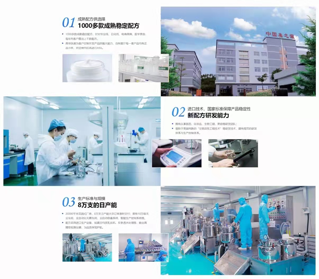 廣東美之源生物科技股份有限公司,位于廣東佛山市,擁有25000平方米的GMPC十萬級凈化全封閉無菌醫藥級車間,是一家集日化、護膚、養身、塑性、私密一體專業生產廠家。可承接妝、消、械三大證號的OEM/ODM生產加工服務。