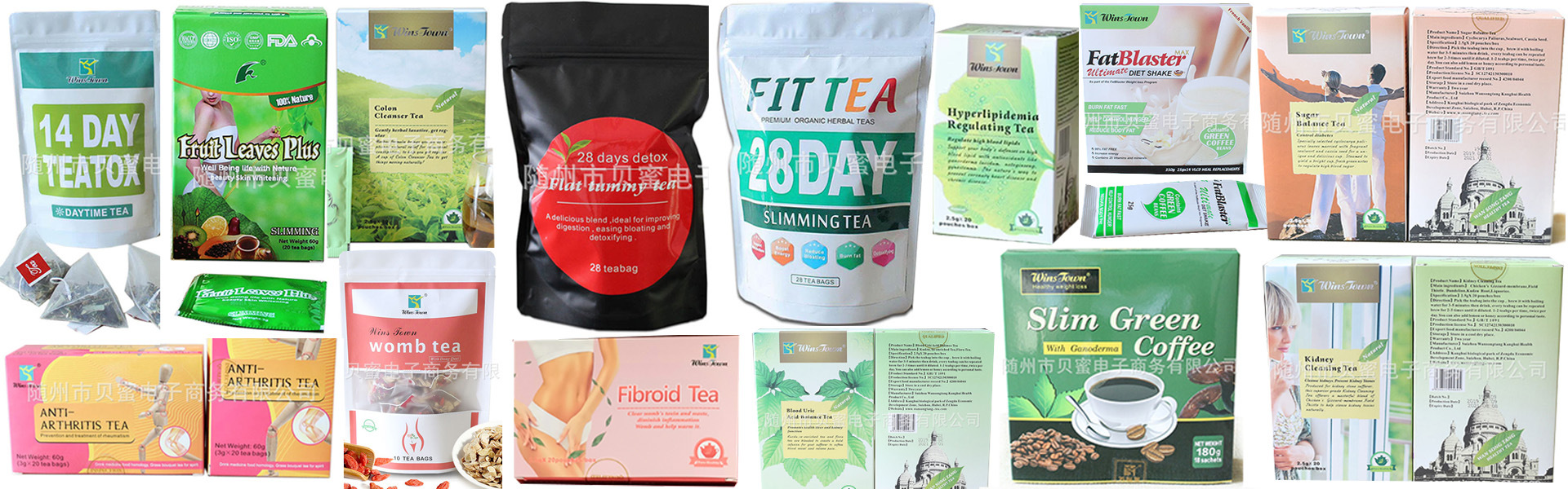 隨州市貝蜜電子商務有限公司主營代用茶、膳食營養代餐粉、戒煙產品、貼、膏滋、泡腳產品、日用品、外國人喜歡的養生茶等、藥食同源原料、包裝、五谷雜糧等產品,所有產品每月都有新批號,可以混批,也可以OEM貼牌定制加工。 部分熱銷現貨產品如: 口臭口苦茶、紅糖姜茶、銀杏黃精茶、神農絳酸茶、159素食全糧飲代餐粉、赤小豆紅薏仁芡實茶、紅豆薏仁芡實粉、老北京足貼、瑤族巴馬泡腳粉、七天戒煙香、戒煙液、濁石清茶、青錢柳茶、大肚子茶、葛根木瓜魔芋粉、木瓜葛根茶、fit tea 28 Days slimmy tea、flat tumy tea、fibroid tea、womb tea、wins town slimming green coffee healthy weight loss、香口三清茶、羅漢清潤茶、老根烏密湯 隨州市貝蜜電子商務有限公司優質的產品質量,廣闊的市場前景,豐厚的代理待遇,強大的代理優勢,讓您創業投資不再難。隨州市貝蜜電子商務有限公司熱誠歡迎各位有志之士前來實地參觀和考察。