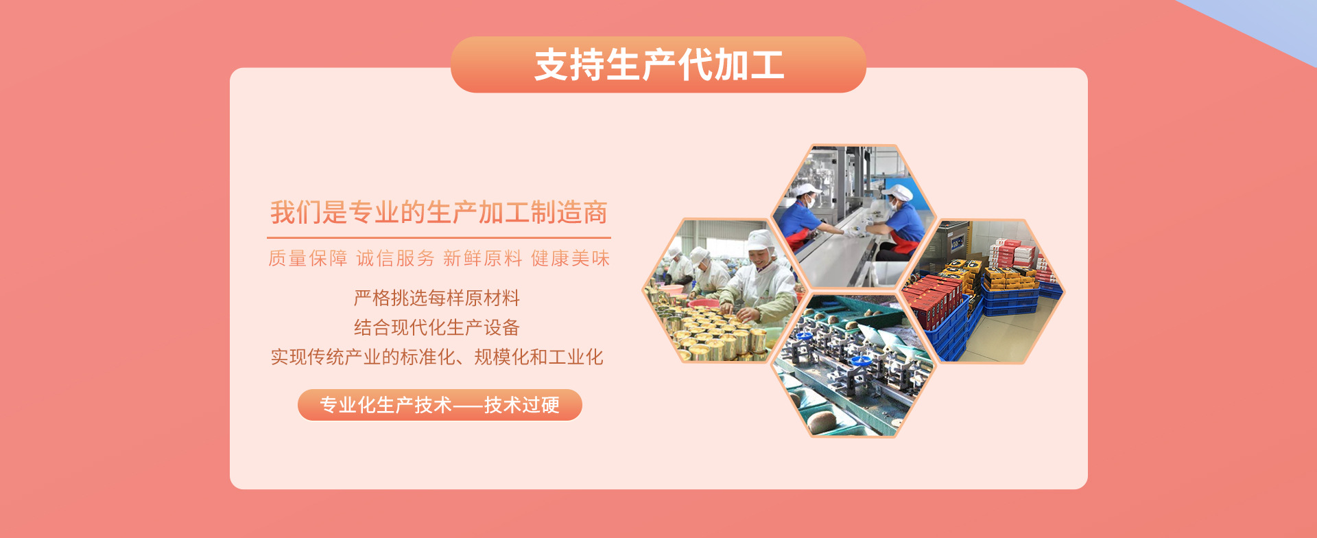 廣西玉林市大同眾香食品有限公司主要從事月餅、各類年貨、年糕 餅干等食品的加工與銷售,是本地知名國營老字號大同酒家改制后新組建起 來的股份有限責任公司,生產的產品深受消費者喜愛。 我們的經營理念:創名優產品,做誠信企業。 我們的目標是:傳承與宏揚大同文化,再續“廣西名點”之優,打 造中華民族食品品牌。 歷年獲獎榮譽榜 2000年大同月餅榮獲“玉林地區名優菜點”、“廣西名點”稱號; 2007年9月大同眾香食品有限公司在玉林市首批通過QS認證; 2008年9月“大同眾香月餅”榮獲“中華民族食品品牌”稱號; 2010年玉林市大同眾香食品有限公司被玉林市玉州區非物質文化保護中心認定為“市級非物質文化遺產玉林月餅制作技藝傳承基地”