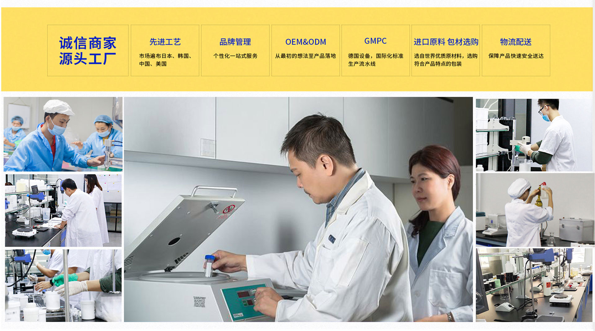 旗下有2家天貓旗艦店,1家京東自營店,自有工廠,集生產、研發、銷售于一體,支持一件代發,平均發貨時長不超過24小時,庫存充足投產速度快。支持化妝品OEM貼牌代加工