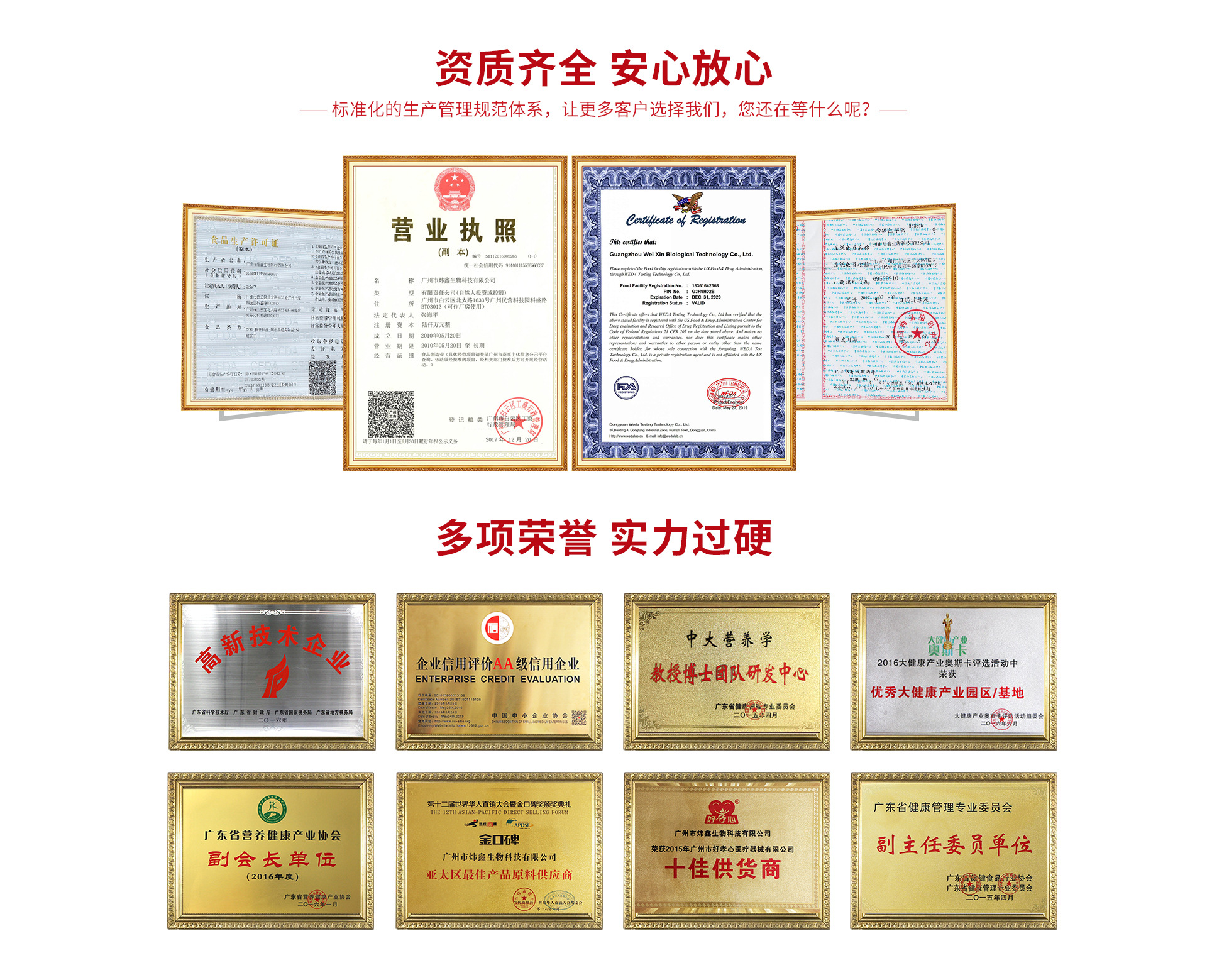 廣州市煒鑫生物科技有限公司,是營養(yǎng)保健食品領(lǐng)域一家以技術(shù)創(chuàng)新及國際化為戰(zhàn)略導(dǎo)向,集研發(fā)、生產(chǎn)、銷售、技術(shù)服務(wù)為一體的綜合服務(wù)提供商。公司在營養(yǎng)保健食品領(lǐng)域深耕多年,一直保持對市場需求和技術(shù)發(fā)展的關(guān)注,持續(xù)開展?fàn)I養(yǎng)、功能配方的開發(fā)和劑型技術(shù)的應(yīng)用研究,以更好地滿足從嬰童、青少年、孕婦到中老年人群的不同健康需求。公司自建前沿營養(yǎng)研究院,擁有2位英國皇家院士、10余位博士、及研發(fā)應(yīng)用工程師組成的行業(yè)專家團(tuán)隊(duì),為客戶提供卓越的產(chǎn)品