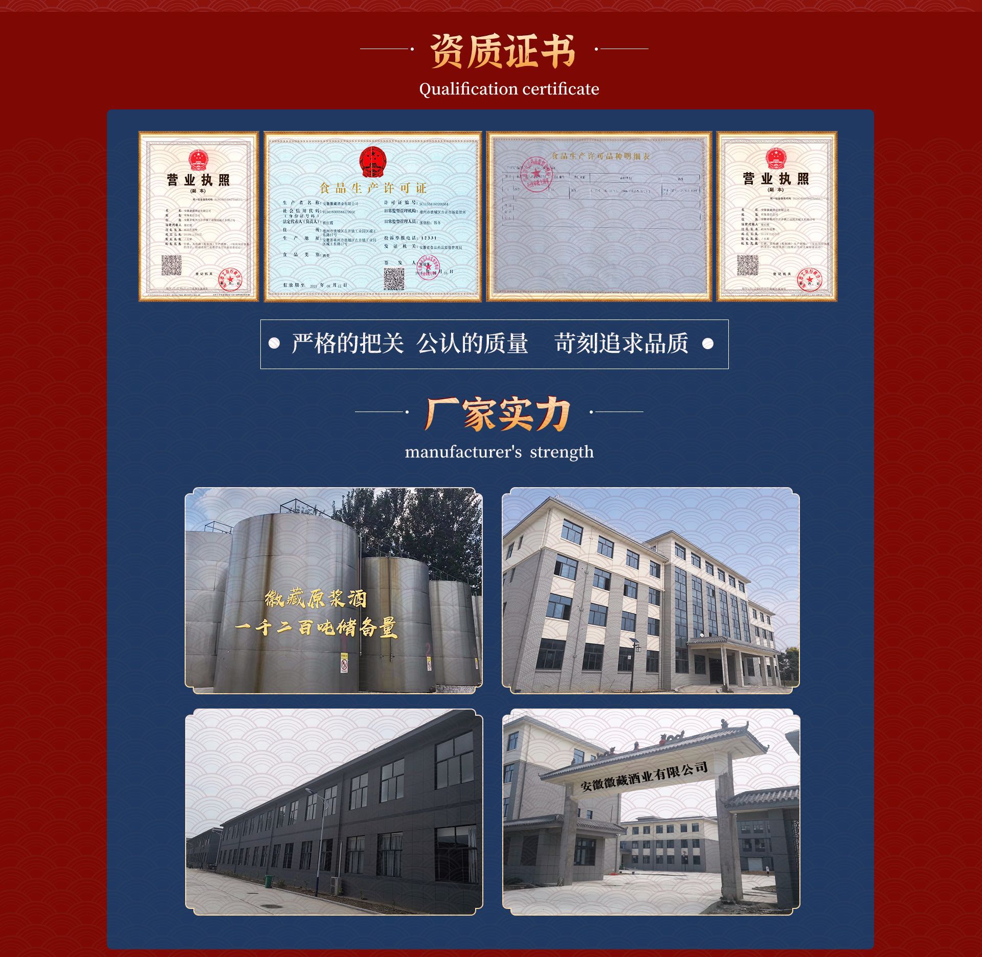 安徽徽藏酒業(yè)有限公司(HuiCang Co. Ltd)總部位于安徽省亳州市譙城區(qū)古井工業(yè)園區(qū),成立于1986年,原名亳州市古井鎮(zhèn)中興酒廠,后經(jīng)重組擴(kuò)建于2012年末正式更名為安徽徽藏酒業(yè)有限公司并在吉林等地設(shè)立分公司以進(jìn)行業(yè)務(wù)拓展。 主要經(jīng)營(yíng)的現(xiàn)有品牌有"獻(xiàn)"系列白酒:天之獻(xiàn)、地之獻(xiàn)、和之獻(xiàn)、尊獻(xiàn)。近年又推出露酒系列相關(guān)產(chǎn)品"參藏"。同時(shí)也向全國(guó)各大中小酒廠出售原漿酒。