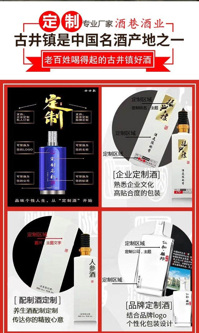 安徽古井鎮酒巷酒業專業打造定制酒產品,我廠是定制酒生產基地,新的白酒時代,定制酒受到年輕消費群體的支持和喜愛,定制酒采用五糧釀造,色清如水晶香甜似幽蘭,口感綿甜凈爽回味悠長。公司擁有優良原酒10000多噸,為各地客戶朋友提供質優純糧定制酒。