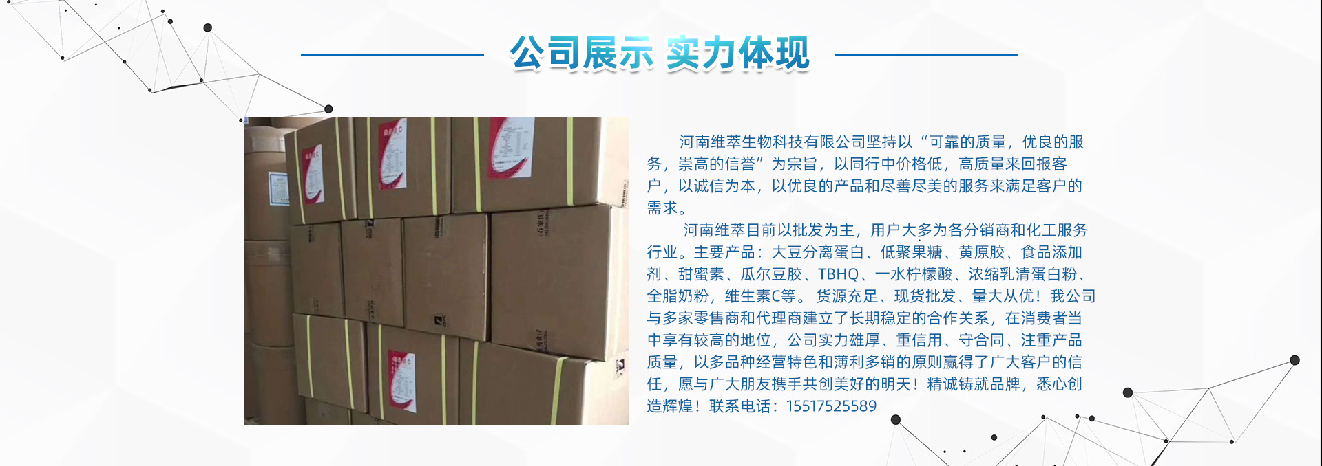 河南維萃生物科技有限公司是生產銷售,化工原料,食品添加劑等專業加工的公司擁有完整.科學的質量管理體系。河南維萃生物科技有限公司的誠信.實力和產品質量獲得業界的認可。本公司以客戶為導向努力開發新產品,把客戶安全放在首位。