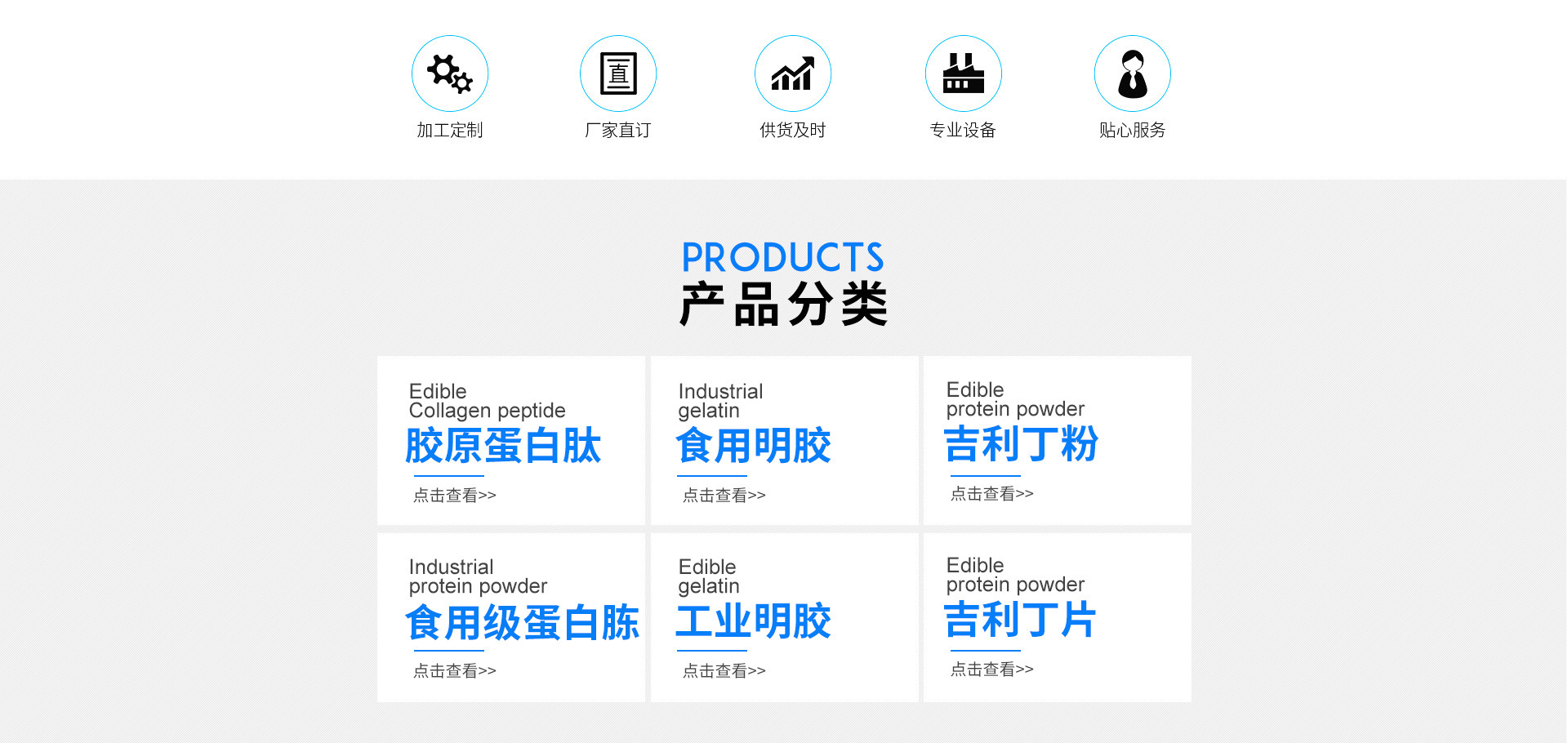 億威隆(廈門)生物科技有限公司是集生產銷售明膠、食用明膠、膠原蛋白粉、工業蛋白粉、蛋白胨,吉利丁片。等產品專業生產和加工的廠家,擁有完整、科學的質量管理體系。于2003年籌建,2005年正式建成。注冊資金500萬元,占地面積5000平方米,現有職工158人,其中高工10人,中級以上技術員35人。