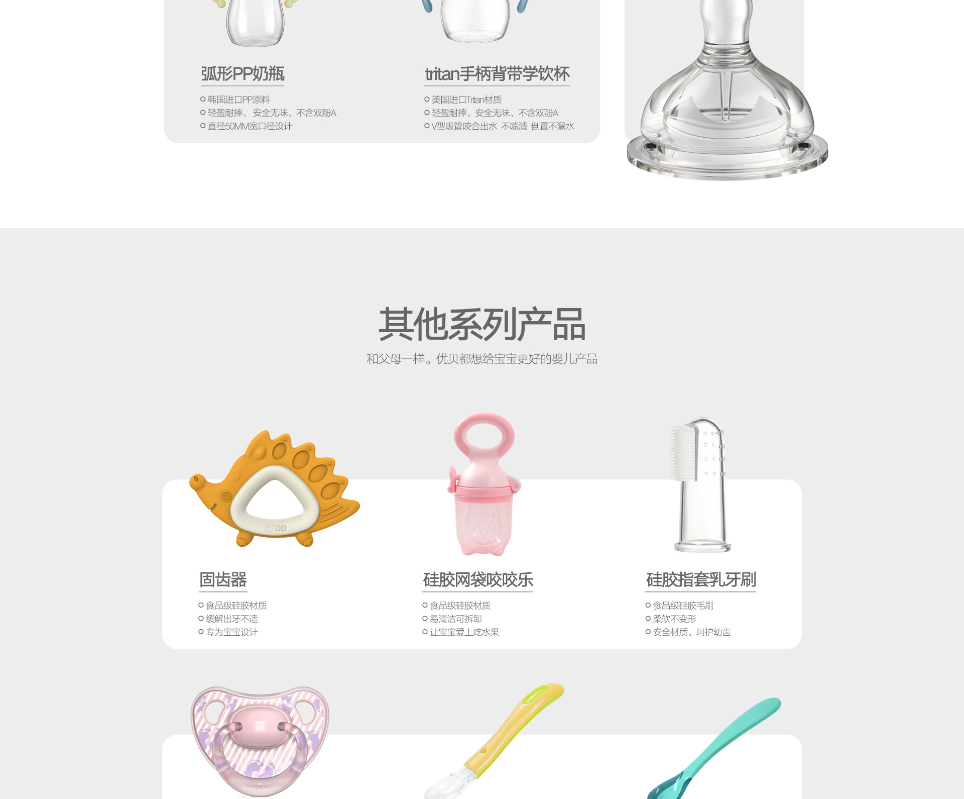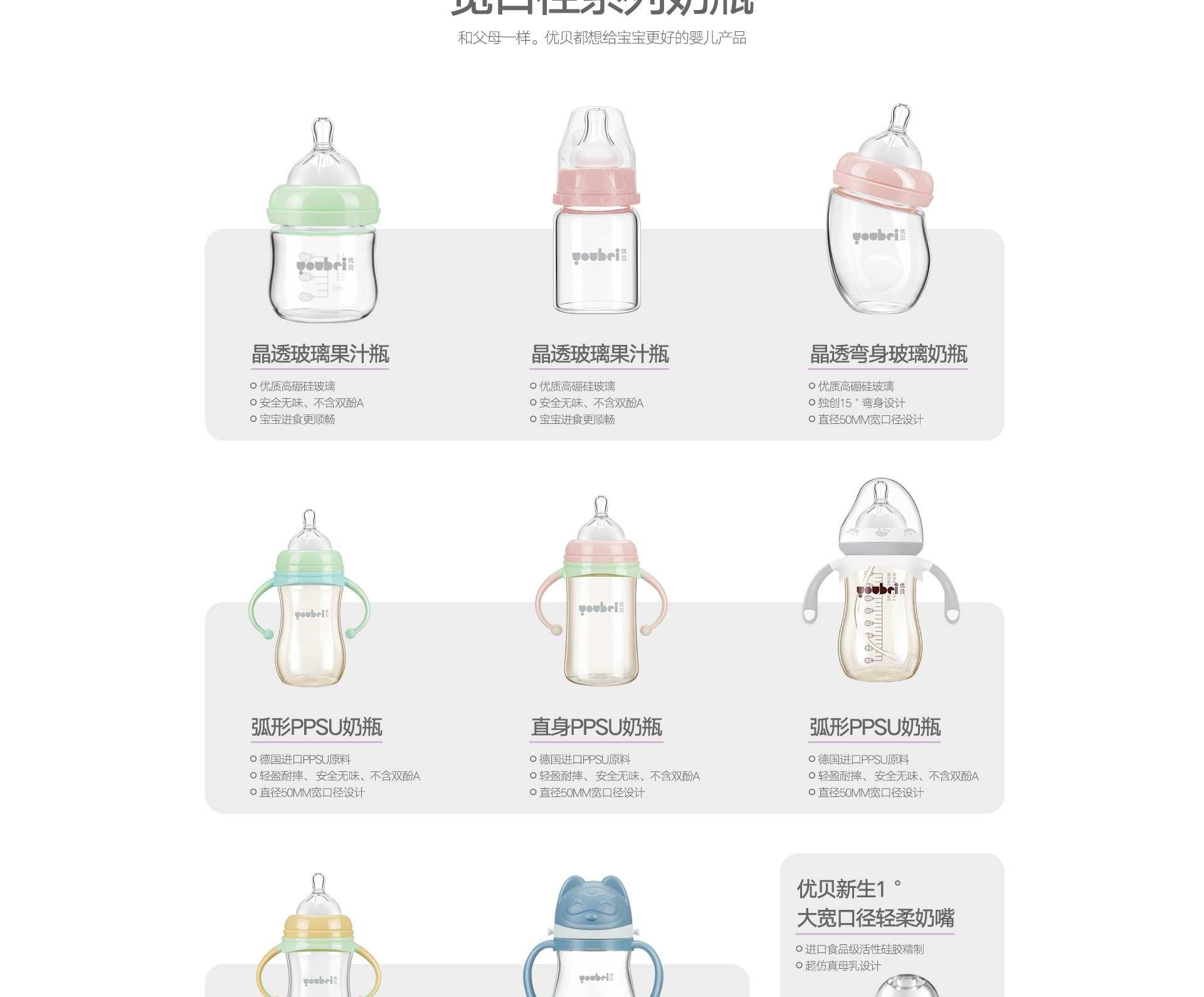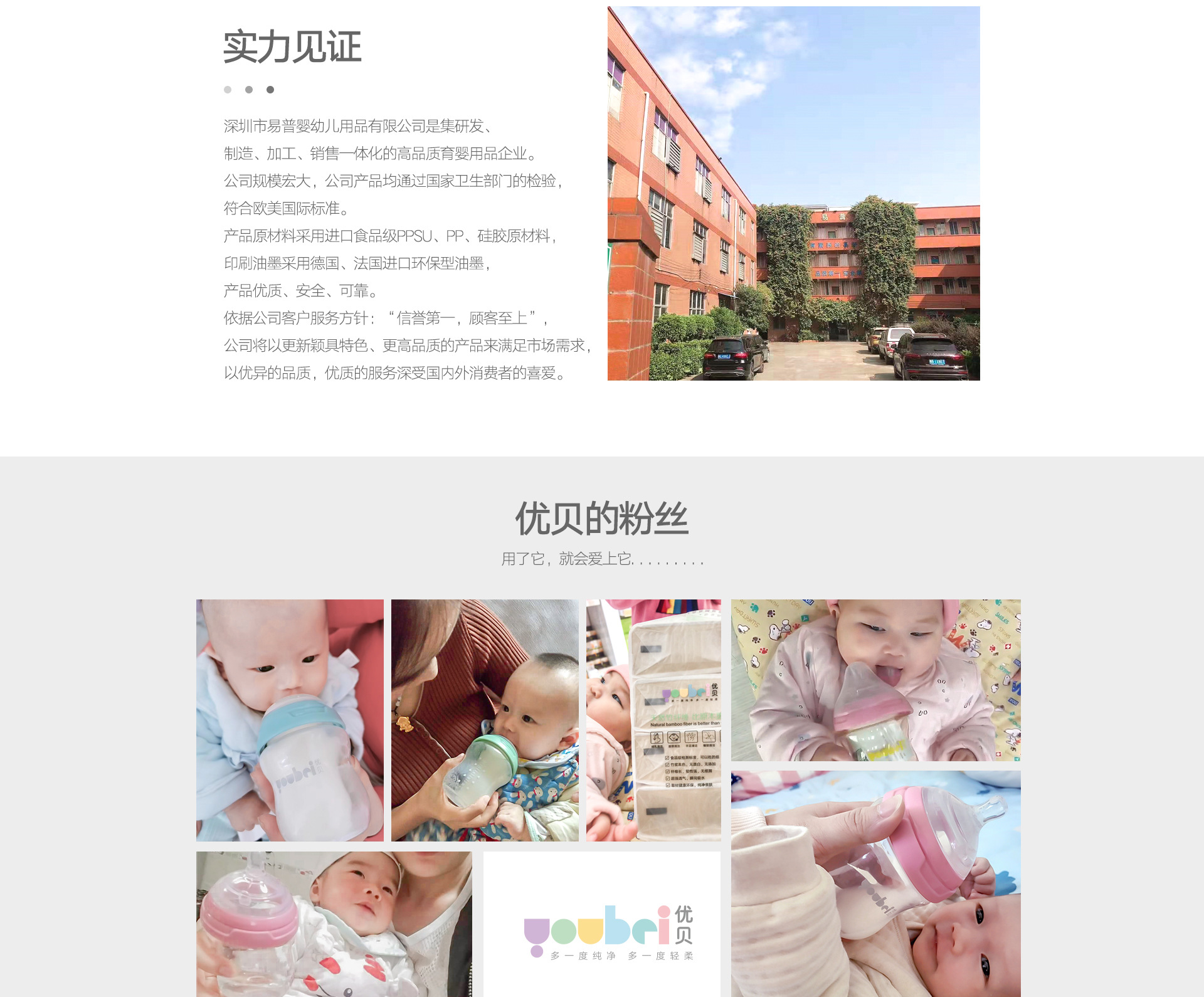 深圳市易普嬰幼兒用品有限公司成立于2008年,自設工廠廣州易普在廣州白云區,集研發、生產、銷售一體化的高品質育嬰用品企業。旗下有“優貝”,“小貓熊”等品牌嬰幼兒系列用品,線下多年實力品牌,全國多家代理商,渠道商合作共贏。 工廠引進日本、臺灣、德國的先進設備,可完成產品自主設計及生產制造。母嬰用品廠家直銷貨源,品質保證,性價比高。 基于”一切為了孩子“的宗旨研發制造出實用、安全的各式哺乳用品系列、口腔機能訓練器類、食具用品、各式學飲杯健康護理用品等。深圳市易普嬰幼兒用品有限公司產品通過國家衛生部門的檢驗,產品原材料采用高硼硅玻璃,進口PP、硅膠、PPSU原材料等,印刷油墨采用德國、法國進口油墨,產品優質、安全、可靠