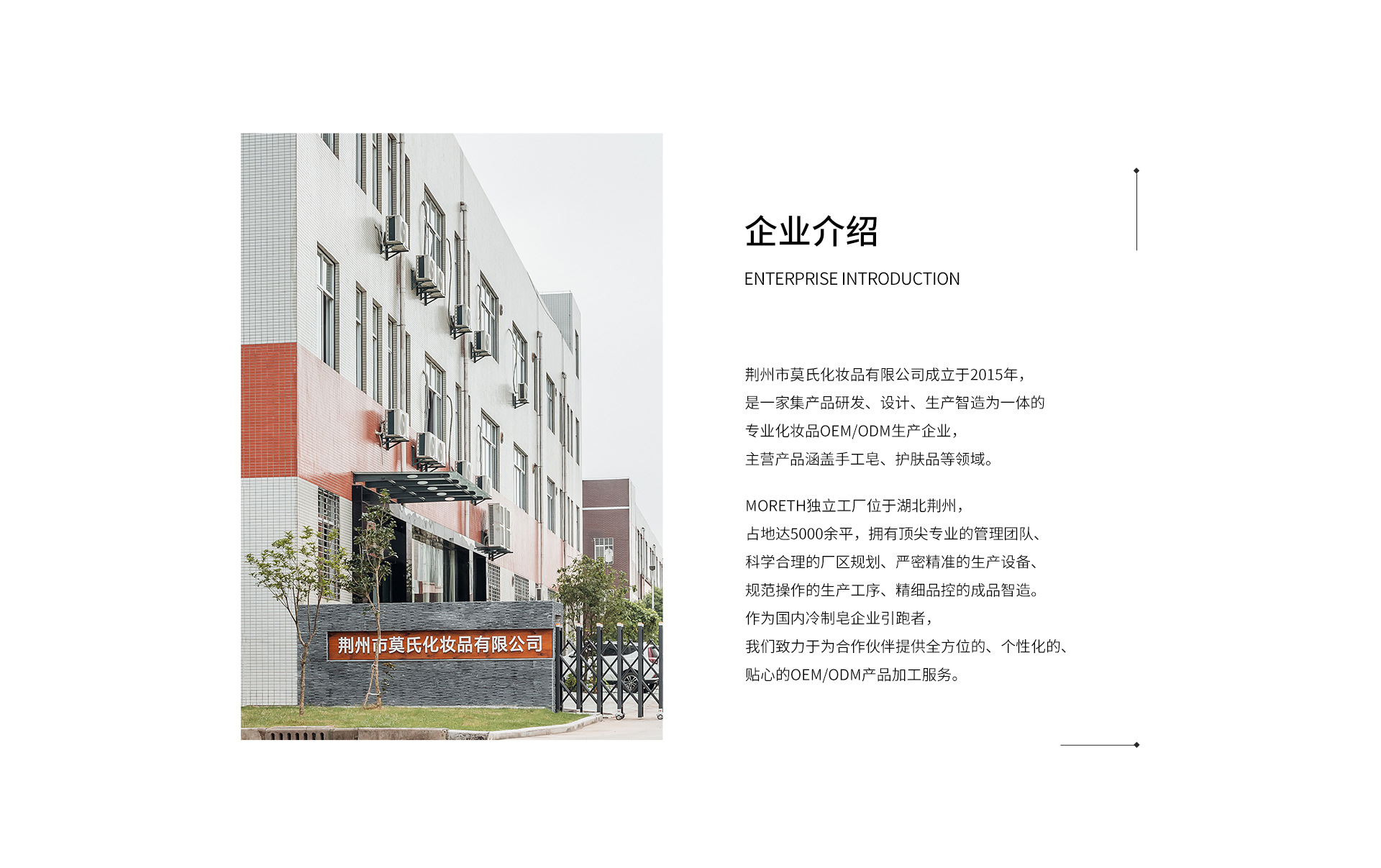 MORETH(荊州市莫氏化妝品有限公司)成立2015年,是一家集產(chǎn)品研發(fā)、設(shè)計、生產(chǎn)智造為一體的專業(yè)化妝品OEM/ODM生產(chǎn)企業(yè),主營產(chǎn)品涵蓋手工皂、護膚品等領(lǐng)域。成立至今,莫氏以敢為人先的魄力、可靠的產(chǎn)品質(zhì)量、專業(yè)的服務(wù)和精細化的風(fēng)險管理,成就了兼具制造、品質(zhì)、專業(yè)的MORETH。