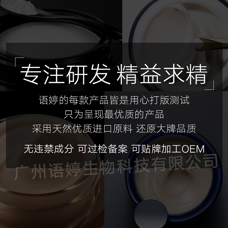 廣州語婷生物科技有限公司,是一家集生產、銷售、研發于一體的化妝品工廠,擁有先進的機器設備、醫藥級車間、乳化間以及嚴謹的科研隊伍,我公司研發的多款產品成功的幫客戶打開了市場,并在生產銷售中不斷提高產品質量、提升產品品質,成功幫助消費者占領中高市場。我司研發生產的面膜、洗面奶、水乳膏霜等護膚品以及洗發水、沐浴露等日化用品、彩妝等受到了廣大消費者的歡迎!公司與多家零售商和代理商建立了長期穩定的合作關系。我司生產、經銷的護膚品、日化用品、彩妝品種齊全、價格合理。兼以我司實力雄厚,重信用、守合同、保證產品質量,以多品種經營特色和薄利多銷的原則,贏得了廣大客戶的信任。歡迎各界朋友蒞臨參觀、指導和業務洽談!