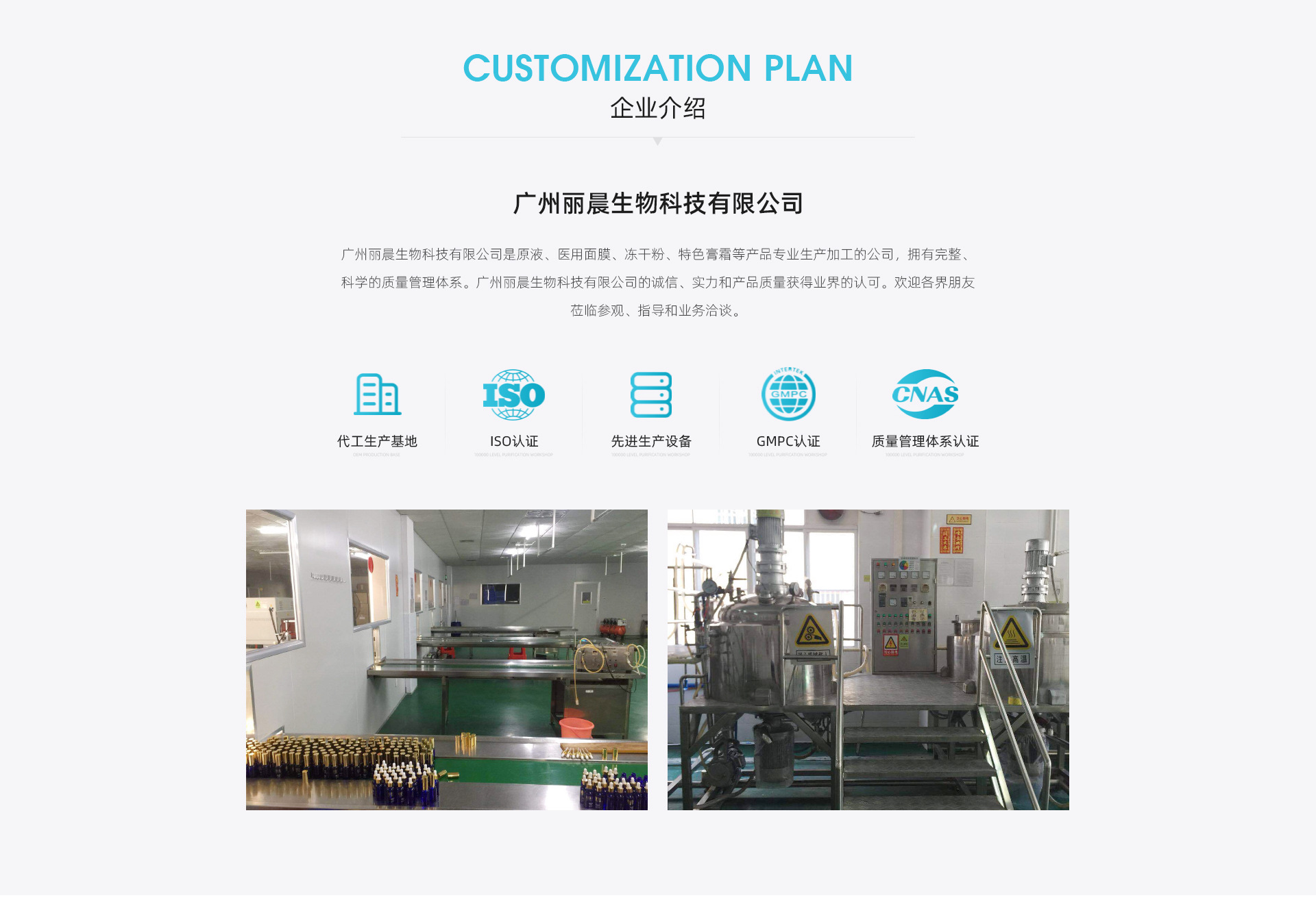 廣州麗晨生物科技有限公司是原液、醫(yī)用面膜、凍干粉、特色膏霜等產(chǎn)品專業(yè)生產(chǎn)加工的公司,擁有完整、科學(xué)的質(zhì)量管理體系。廣州麗晨生物科技有限公司的誠(chéng)信、實(shí)力和產(chǎn)品質(zhì)量獲得業(yè)界的認(rèn)可。歡迎各界朋友蒞臨參觀、指導(dǎo)和業(yè)務(wù)洽談。