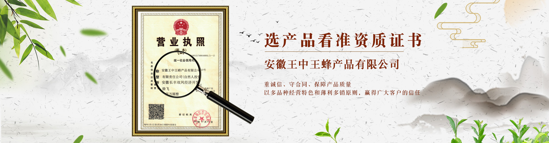 安徽王中王蜂產品有限公司是蜂蜜等產品專業生產加工的公司,擁有科學的質量管理體系。安徽王中王蜂產品有限公司的誠信、實力和產品質量獲得業界的認可。歡迎各界朋友蒞臨參觀、指導和業務洽談。 王中王公司始終堅持“誠信合作,雙贏共生”的經營理念,堅持以市場為導向研發新產品。在生產過程中嚴格執行國家食品衛生標準,并獲得了國家頒發的《全國工業產品生產許可證》(QS認證)體系。 王中王公司在社會各界的支持下,全體員工共同努力下,在取得了良好經濟效益的同時也取得了社會效益。公司在二次創業之際,引進技術設備和管理經驗;健康發展之偉業,把產品做精做細,市場做深做透、企業做大做強,為振興民族企業做出貢獻。