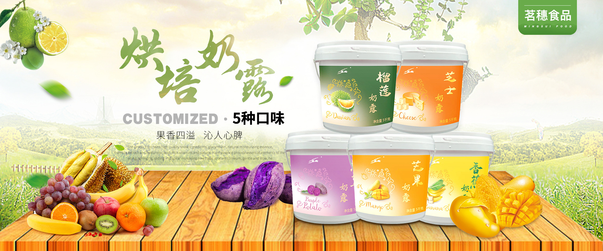 廣州市茗穗食品有限公司成立于2009年,主要經營生產果膏(果味醬)系列、烘焙奶露系列、果餡系列、復配著色劑、色香油、各類烘焙香粉、各類烘培預拌粉等,品種齊全,價格公道。本公司技術力量雄厚,重信用、守合同、保證產品質量,以多品種經營特色和薄利多銷的原則,贏得了廣大客戶的信任。歡迎各界朋友蒞臨參觀、指導和業務洽談。本公司亦可幫廣大有需要的客戶貼牌代工生產,歡迎來電咨詢