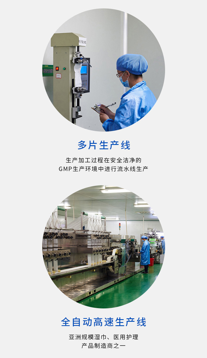 公司成立于2011年,經過近10年艱苦的創業,公司擁有13300平方米的生產基地,已建立研發中心、萬級實驗室。擁有10萬級無菌級標準化生產車間。公司現有產能40-80片袋裝濕巾12萬包/日,50-100片桶裝濕巾6萬桶/日,10-30片袋裝濕巾6萬包/日,單片18萬片/日。