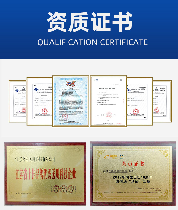 公司擁有消毒產品許可證,化妝品生產許可證,FDA、CE、EPA、ISO9001、13485等多項許可認證,產品通過SGS、廣州微生物所等多家專業檢測機構檢測。