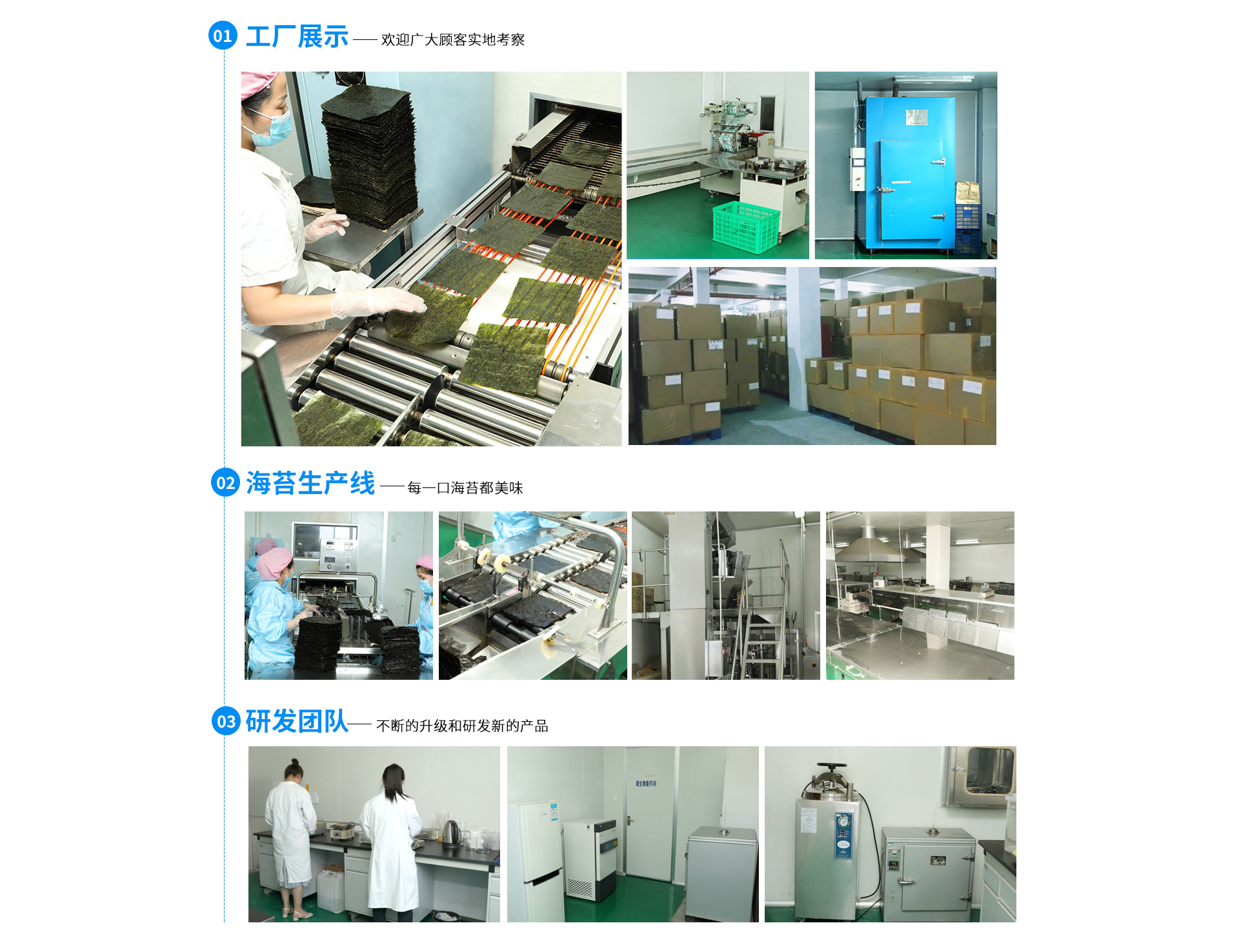 連云港禾力食品有限公司是生產(chǎn)海苔食品的專業(yè)公司。公司始建于2002年11月,2006年3月獲江蘇省質(zhì)量技術(shù)監(jiān)督局生產(chǎn)許可,2012年3月通過中國質(zhì)量認證中心的ISO22000食品安全管理體系認證“含HACCP原理”、2014年通過美國FDA注冊。公司位于江蘇省連云港市贛榆海洋經(jīng)濟開發(fā)區(qū)興成路六號,占地面積8040平方米,廠房6000平方米,公司現(xiàn)有進口韓國海苔二次生產(chǎn)線三條,其中一條是巖燒海苔全自動生產(chǎn)線;日本產(chǎn)的海苔二次生產(chǎn)線一條;自主研發(fā)夾心海苔生產(chǎn)線該生產(chǎn)線目前國內(nèi)領(lǐng)先。公司加工生產(chǎn)烤海苔.調(diào)味海苔、夾心海苔、海苔卷、巖燒海苔、炒海苔等系列品種和口味,產(chǎn)品在國內(nèi)外海苔產(chǎn)品展示會上獲得很高聲譽,遠銷歐美、東南亞、俄羅斯等國家和地區(qū)。公司生產(chǎn)的浪爾牌即食海苔、禾之力牌巖燒海苔、夾心海苔、海苔卷、信榆牌烤海苔、芝麻炒海苔三個品牌,深受國內(nèi)外消費者青睞