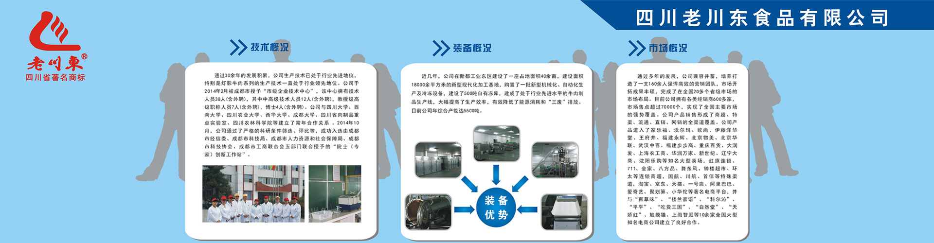 四川老川東食品有限公司注冊地址為中國四川省成都市新都區新都鎮君躍路588號,經營范圍為生產、銷 售:肉制品(醬鹵肉制品)、罐頭(禽畜水產罐頭)、豆制品(非發酵性豆制品)(以上項目憑有效許可 證經營);電腦軟件開發;貨物進出口、技術進出口(法律、行政法規禁止的項目除外,法律、行政法限 制的項目取得許可后方可經營) 。