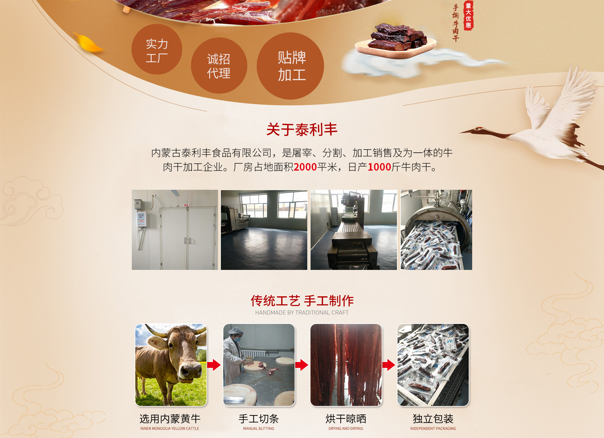 內蒙古泰利豐食品有限公司是牛肉零食等產品專業生產加工的公司,擁有完整、科學的質量管理體系。內蒙古泰利豐食品有限公司的誠信、實力和產品質量獲得業界的認可。歡迎各界朋友蒞臨參觀、指導和業務洽談。