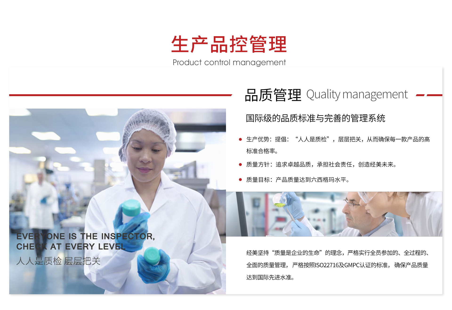 廣州經美化妝品制造有限公司是一家專業從事高端化妝品研發、生產、銷售、服務、及功效性原料供應于一體的OEM、ODM(代加工)綜合性企業。擁有八千平方標準廠房,10萬級生產車間及歐盟認證實力資質,本公司以“產品質量——安全 ? 有效;協同合作——雙向 ? 共贏”為經營理念,著力打造以客戶為根本,以質量為命脈,讓顧客放心的自主品牌加工基地