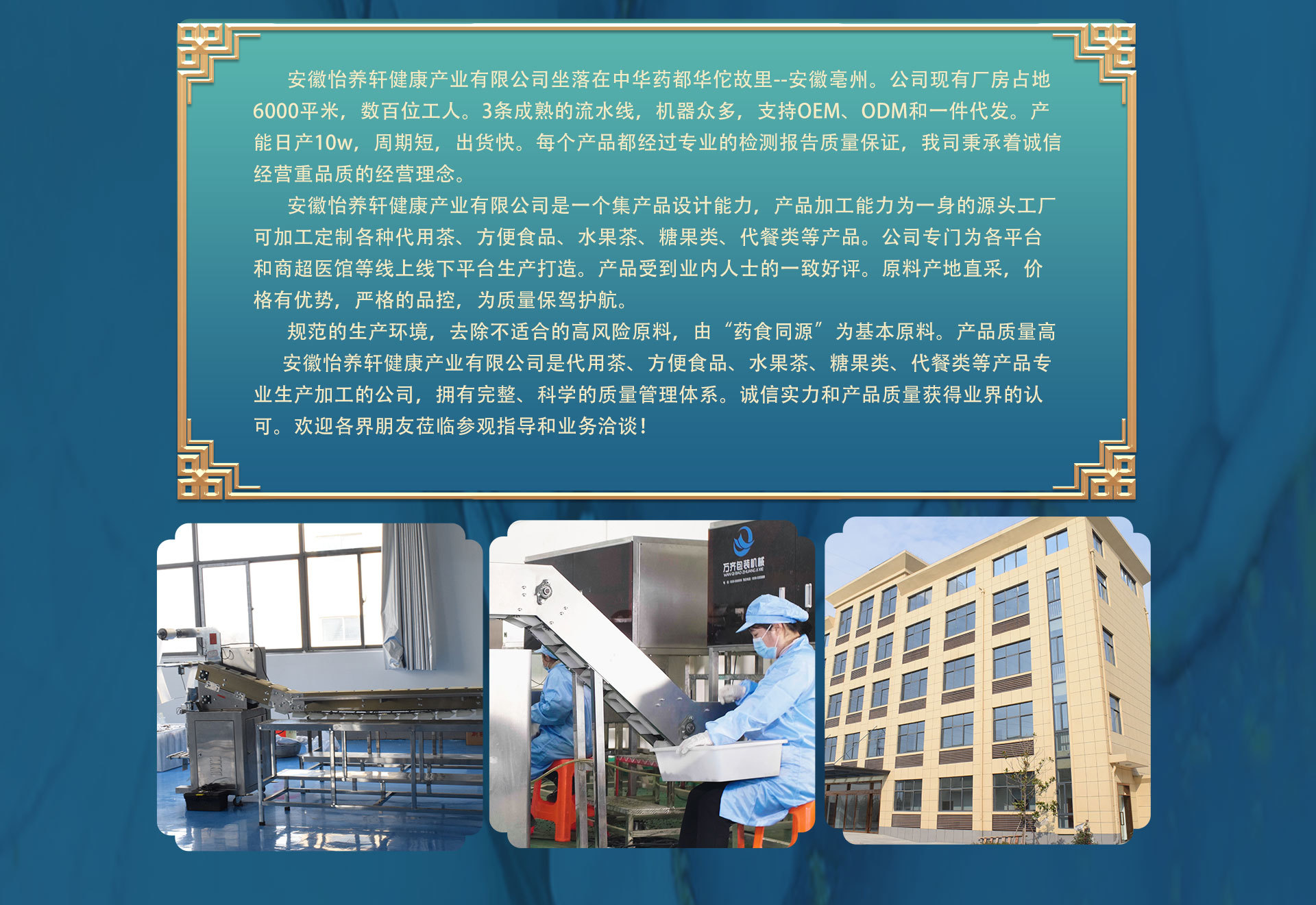 安徽怡養軒健康產業有限公司是花茶、膏滋、黑芝麻丸、代餐粉等產品專業生產加工的公司,擁有完整、科學的質量管理體系。安徽怡養軒健康產業有限公司的誠信、實力和產品質量獲得業界的認可。歡迎各界朋友蒞臨參觀、指導和業務洽談。