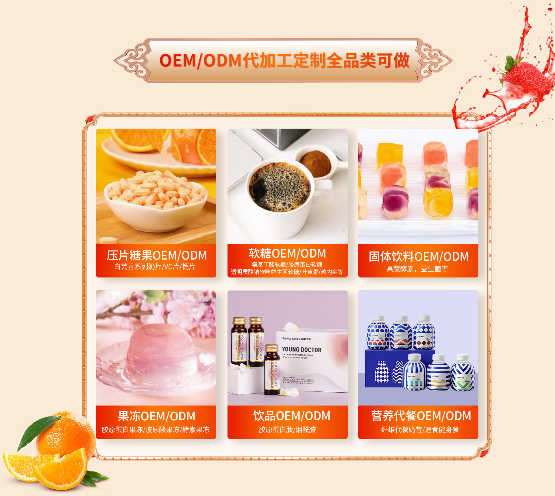 成都方棱科技有限公司,專注于健康食品研發`生產加工及銷售。包含口服液、軟糖、果凍、代餐粉、片劑,運動營養食品,產品覆蓋男性,女性,中老年等人群,涉及美容營養,體重管理,男性健康,腸道管理,基礎營養補充等保健功能食品OEM貼牌代加工、ODM等綜合服務的生產廠家。 屹立于大健康產業市場,致力于打造全國健康產業OEM服務先驅。10年專業研發健康食品,服務客戶電商,微商,線下實體店及海外出口貿易等,我們秉承質量優先,誠信服務的原則, 專業為客戶提供優質的產品,實現合作產銷共贏。經營的各類養生保健食品,品類齊全,價格合理,以團結、創新、奉獻的精神,持續研發、制造、經營科學的營養食品、健康食品,致力打造優良的保健食品生產企業,制造適合人類的營養健康品,為人類健康事業做出貢獻。 成都方棱科技有限公司實力雄厚,重信用、守合同、保證產品質量,以多品種經營特色和薄利多銷的原則,贏得了廣大客戶的信任。
