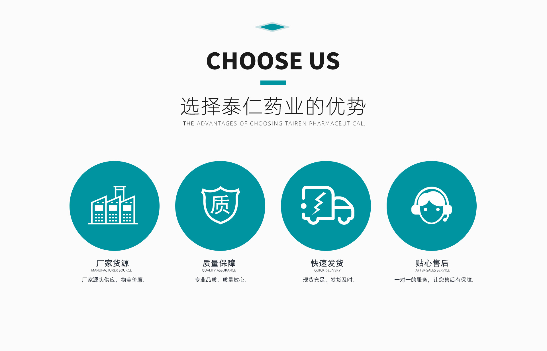 湖南泰仁藥業有限公司創建于2015年,位于歷史文化名城湖南省長沙市,是醫藥、獸藥等產品專業生產加工及銷售一體的公司,擁有完整、科學的質量管理體系。 公司醫藥制劑發展迅速,已擁有維生素類、抗生素類、心血管類、解熱鎮痛類等近百種品種規格的產品,有足夠的市場供應能力。湖南泰仁藥業有限公司本著誠信經營、互惠互利的原則,竭誠與您精誠合作、共謀發展、造福人類。 公司始終視質量為根,視服務為本,嚴格按照GMP要求建立了完整的質量保證體系和質量控制標準以及對于每個客戶的每個要求我們都倍感珍惜且竭盡所能。