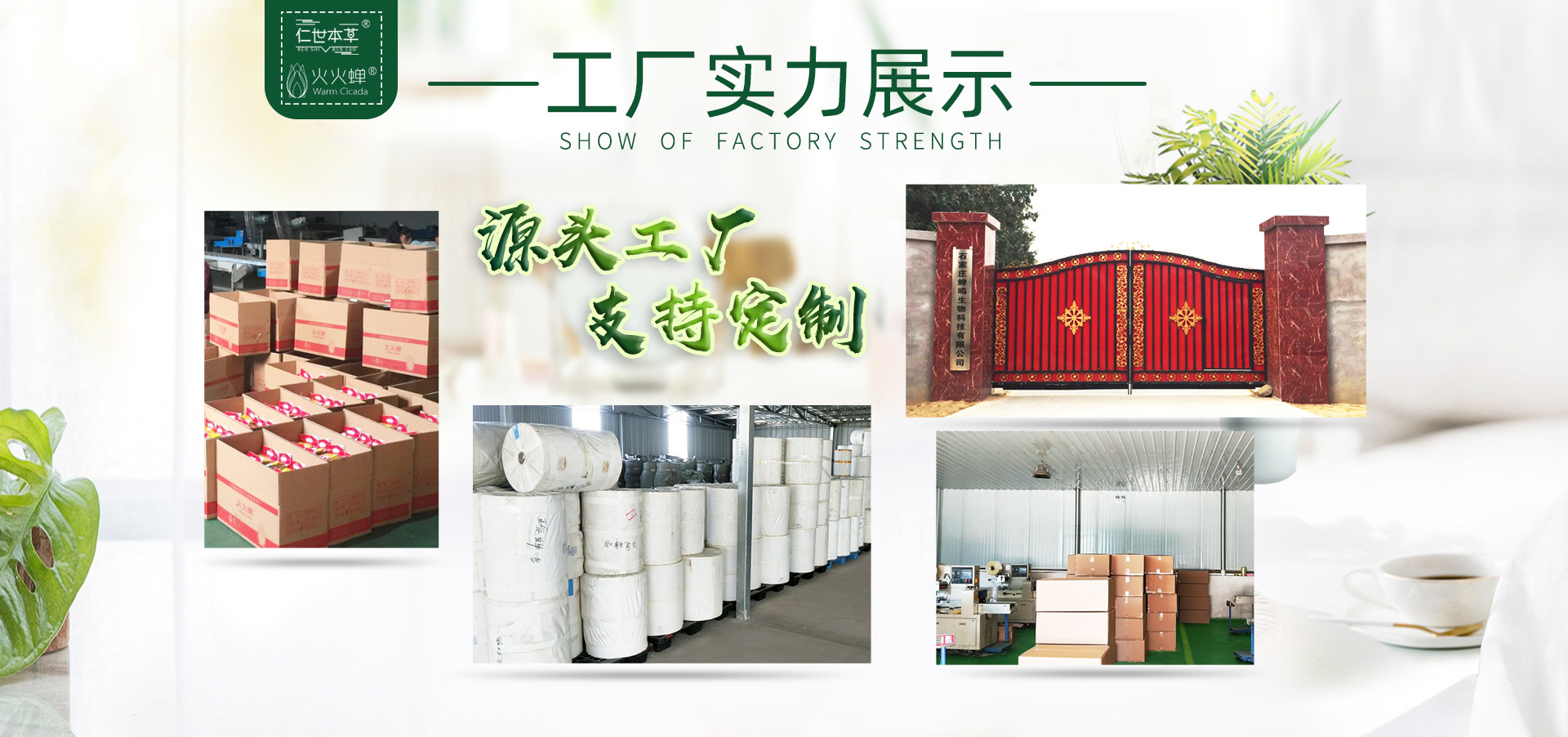 石家莊蟬鳴生物科技有限公司是一家從事保健產品和自發熱產品、艾灸貼、蒸汽眼罩等產品研發、生產、銷售于一體高科技企業,公司自有品牌“火火蟬”。 成立于2016年,支持OEM/ODM服務,可加工定制不同尺寸、型號的各類產品!公司依靠專業的研發生產技術為客戶提供品質優良、性價比更高的產品和更快速周到的服務,與多家生產廠家建立了良好的合作關系,日產暖貼100萬貼以上,深受國內外客戶好評。產品遠銷香港、臺灣、澳大利亞、美國、英國、俄羅斯、日本、韓國等多個國家地區。