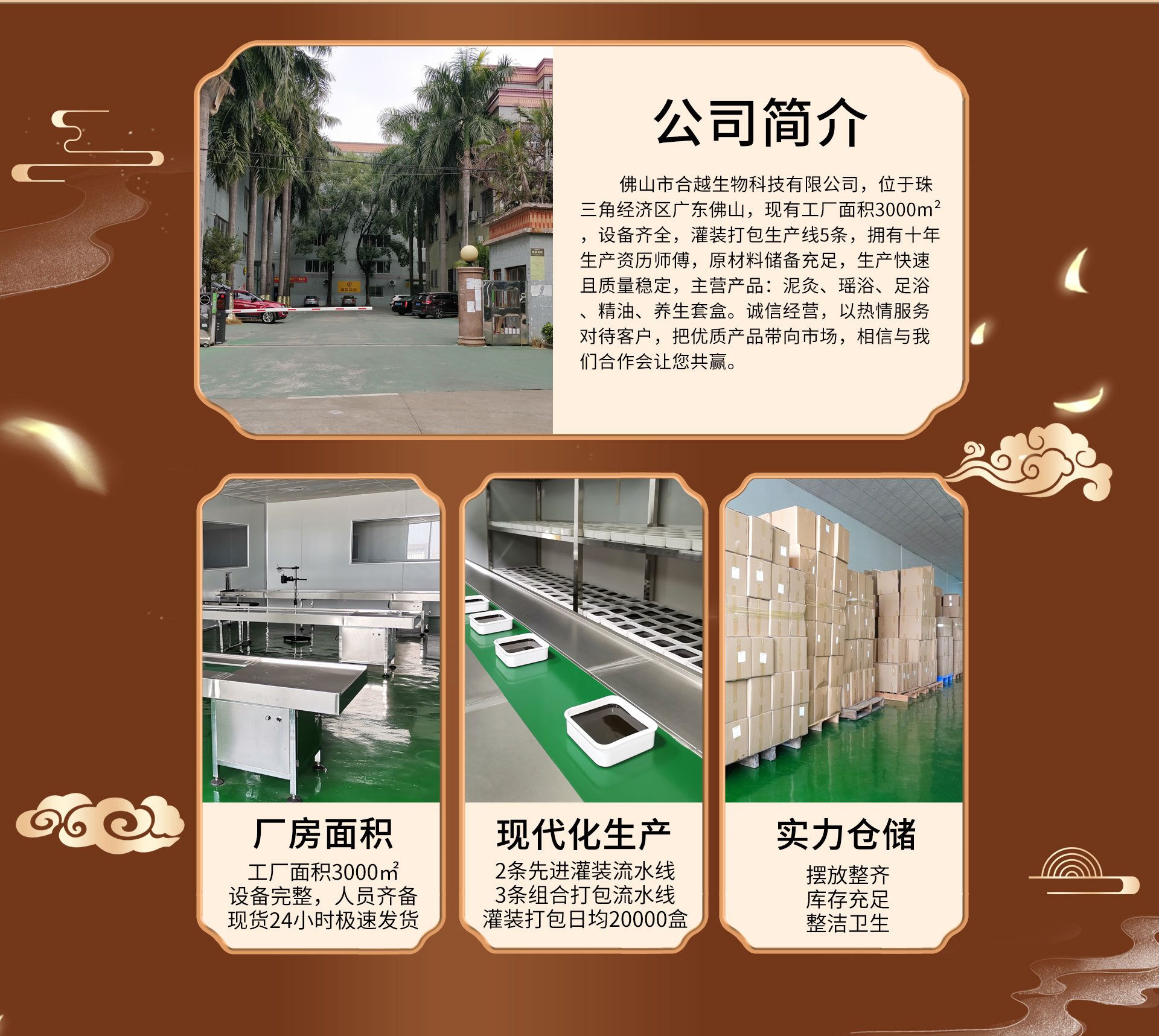 佛山市合越生物科技有限公司,位于廣東省佛山市,集美容養(yǎng)生產(chǎn)品的加工定制、經(jīng)銷批發(fā)為一體,生產(chǎn)中草本泥膏、瑤浴泡澡包、足浴泡腳粉、按摩開背精油及美容養(yǎng)生套盒等產(chǎn)品。本公司擁有完整、科學(xué)的研發(fā)體系,現(xiàn)代化自動生產(chǎn)流水線,為客戶提供研發(fā)服務(wù)及產(chǎn)能保障。產(chǎn)品直供美容院、養(yǎng)生館、桑拿洗浴館、酒店和外貿(mào)公司等各類養(yǎng)生美容銷售場所,與各大零售代理建立穩(wěn)定的合作關(guān)系。歡迎各界朋友蒞臨參觀、指導(dǎo)和業(yè)務(wù)洽談。