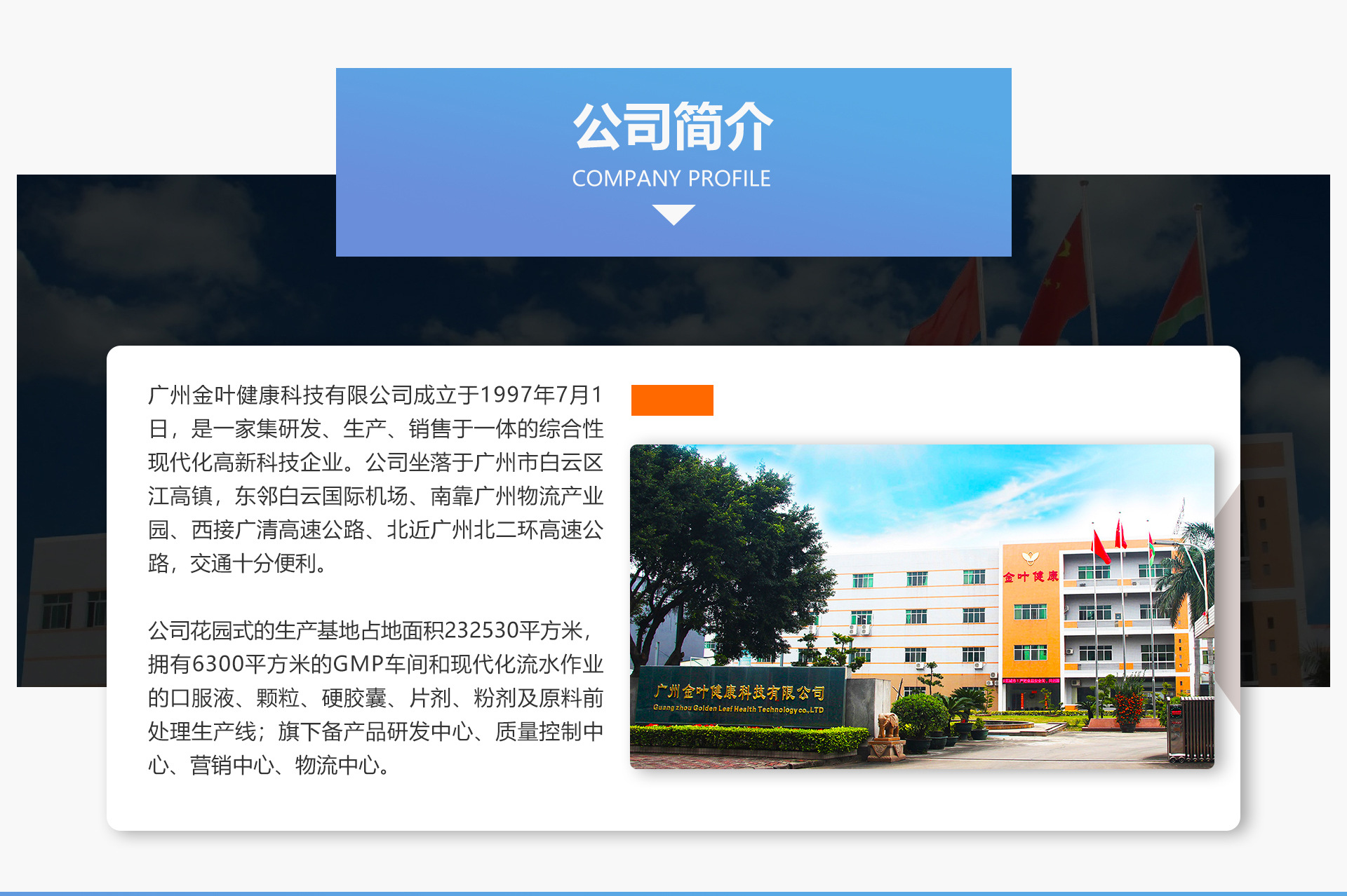公司花園式的生產基地占地面積23530平方米,擁有6300平方米的GMP車間和現代化流水作業的口服液、顆粒、硬膠囊、片劑、粉劑及原料前處理生產線;旗下備產品研發中心、質量控制中心、營銷中心、物流中心。